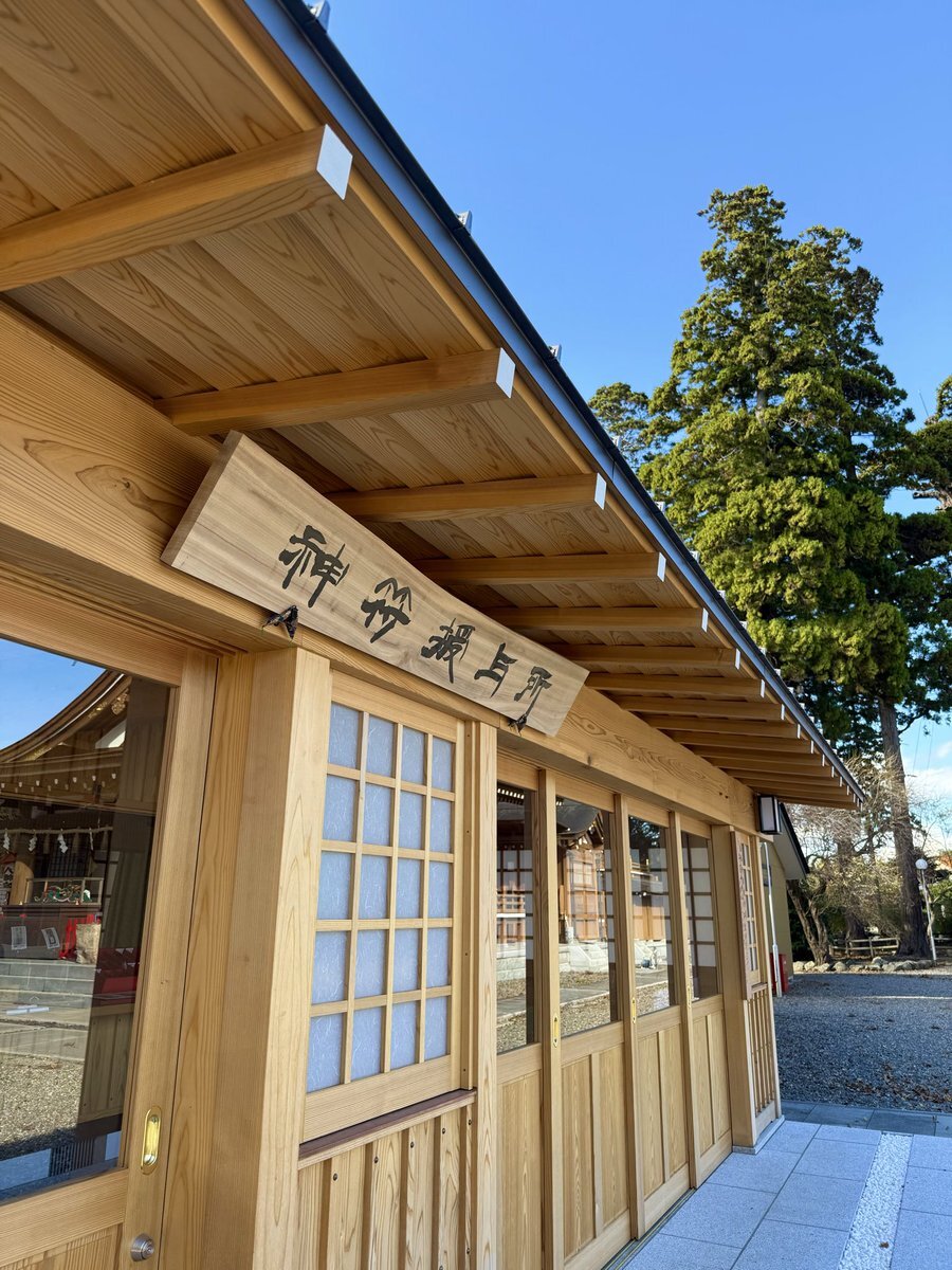 社務所改築工事無事終了致しました。 長い間ご迷惑をおかけして申し訳ありません。 新たに神符授与所として再開致します⛩ 神符授与所の扁額は時崎伍鳳先生に揮毫して頂きました。 #日本 #茨城県 #高萩市 #安良川 #総鎮守 #八幡宮 (#高萩八幡宮)(#安良川八幡宮) #旧県社 #神社 pic.x.com/bA30EOJBT1