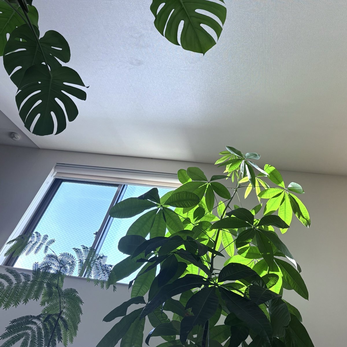 おはよーいいお天気〜て朝撮った写真、よく見たら天井に手形あって急にホラー😨www #緑のある暮らし #観葉植物 pic.x.com/pDetmVAKYf