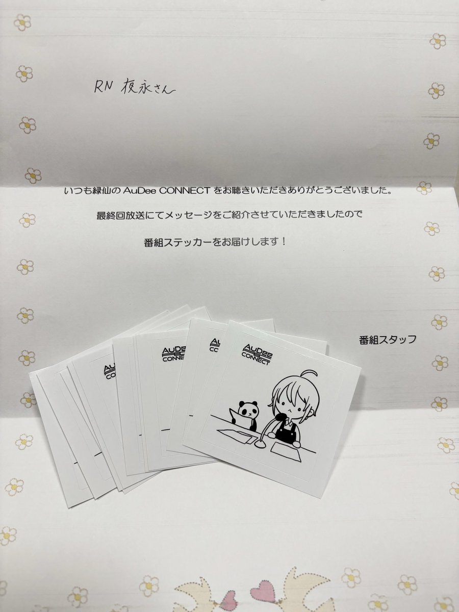 #緑仙はやく寝ろ 緑仙さんの番組ステッカー、届きました…! なななんと、10枚…⁈ こんなに大盤振る舞いで良いんですか…⁈ 家宝にします…!😭 飾る用と、保管用と、他のリスナーさんにお裾分けする用にします…! ありがとうございました…! pic.x.com/k7Ph4Kf0Pw