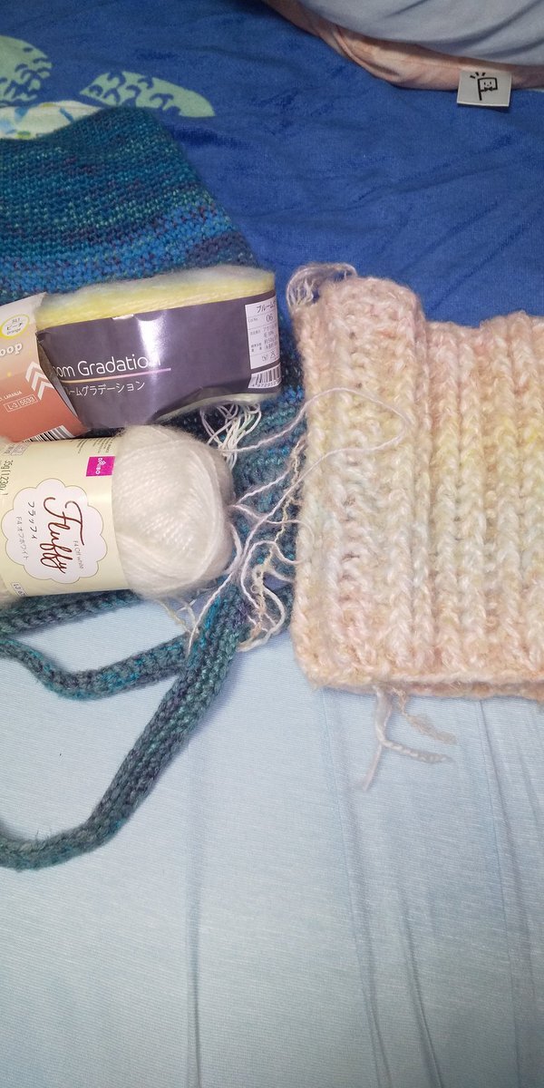 フラッフィとストレッチループとブルームグラデーションを三本まとめて編んでます。 レッグウォーマーを編んでるけど、すでに大きすぎた…。でもブルームグラデーションを混ぜたから色合いがとてもかわいい💕 このまま編んでいく!! #かぎ針編み #編み物好きな人と繋がりたい pic.x.com/FFMJ5FQXC5