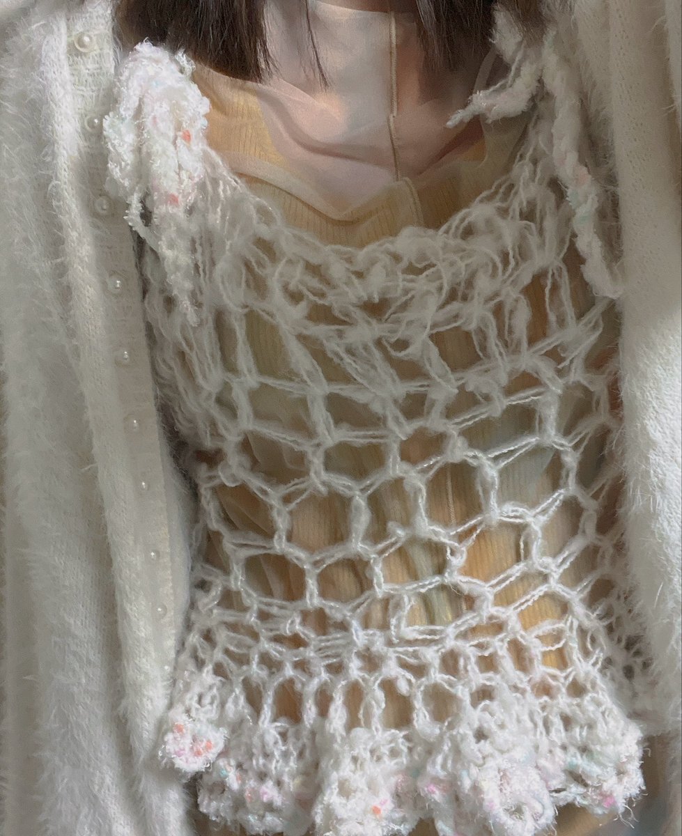 #4 ふあふあビスチェ #フルーツガーデン で編んだ見頃に #ごしょう産業 さんのシュガーボンボンでフリルをつけました♡ #編み物 #編み物好きな人と繋がりたい #ハンドメイド #かぎ針編み #ユザワヤ pic.x.com/LEQB5q09oL