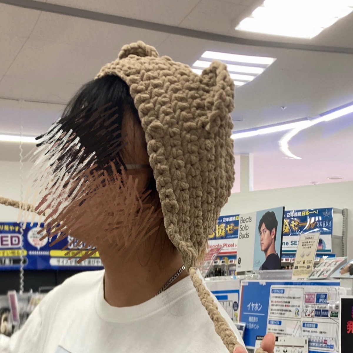 【探しています】 タイムラインに一瞬だけ流れていった編み図を探しています。 マスタード色のニット帽で、耳あてが付いた↓画像のような形のものです。 海外のフリー編み図のようで、海外の方が被っていたような気がします。 「これ可愛いよね フリーだよ!」的な文章だったと思います。 #編み物