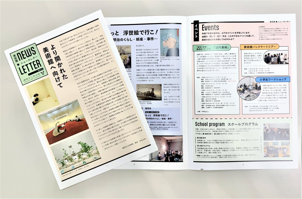【美術館ニュースレター】 最新号(2025/No.02)が、#練馬区立美術館 、図書館等の区立施設などで配布されています🎵 「より開かれた美術館へ向けて」(伊東館長メッセージ)、展覧会やイベント情報などが載っています⭐️ ぜひ、ご覧ください! neribun.or.jp/tomonokai/muse… #練馬区 #美術館 pic.x.com/k3lr6lMuEQ
