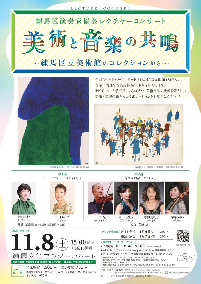 【好評発売中✨】 11/8(土)練馬区演奏家協会 #レクチャーコンサート #美術と音楽の共鳴 ~ #練馬区立美術館 のコレクションから~ 画家・大沢昌助の描いた《12のエチュード》や『音楽家物語 ハイドン』など、美術作品の映像と共に演奏をお楽しみいただくコンサートです♪ neribun.or.jp/event/detail_n… pic.x.com/VXV21O2Pjm