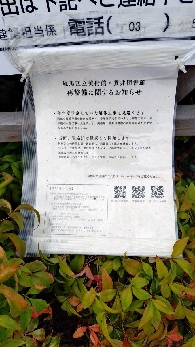 #練馬区立美術館 にて #身体で感じる緑とアート展 紆余曲折ありまして美術館、図書館の再整備が中止となり、それにともなり解体工事も中止になりこのまま継続開館のお知らせが、HPに9/5付けで出たこちら。この展示が本来ならこの建物で開催する最後となる筈でした 良き決断となる事を祈り今後も訪問を pic.x.com/WOnsCfb9e8