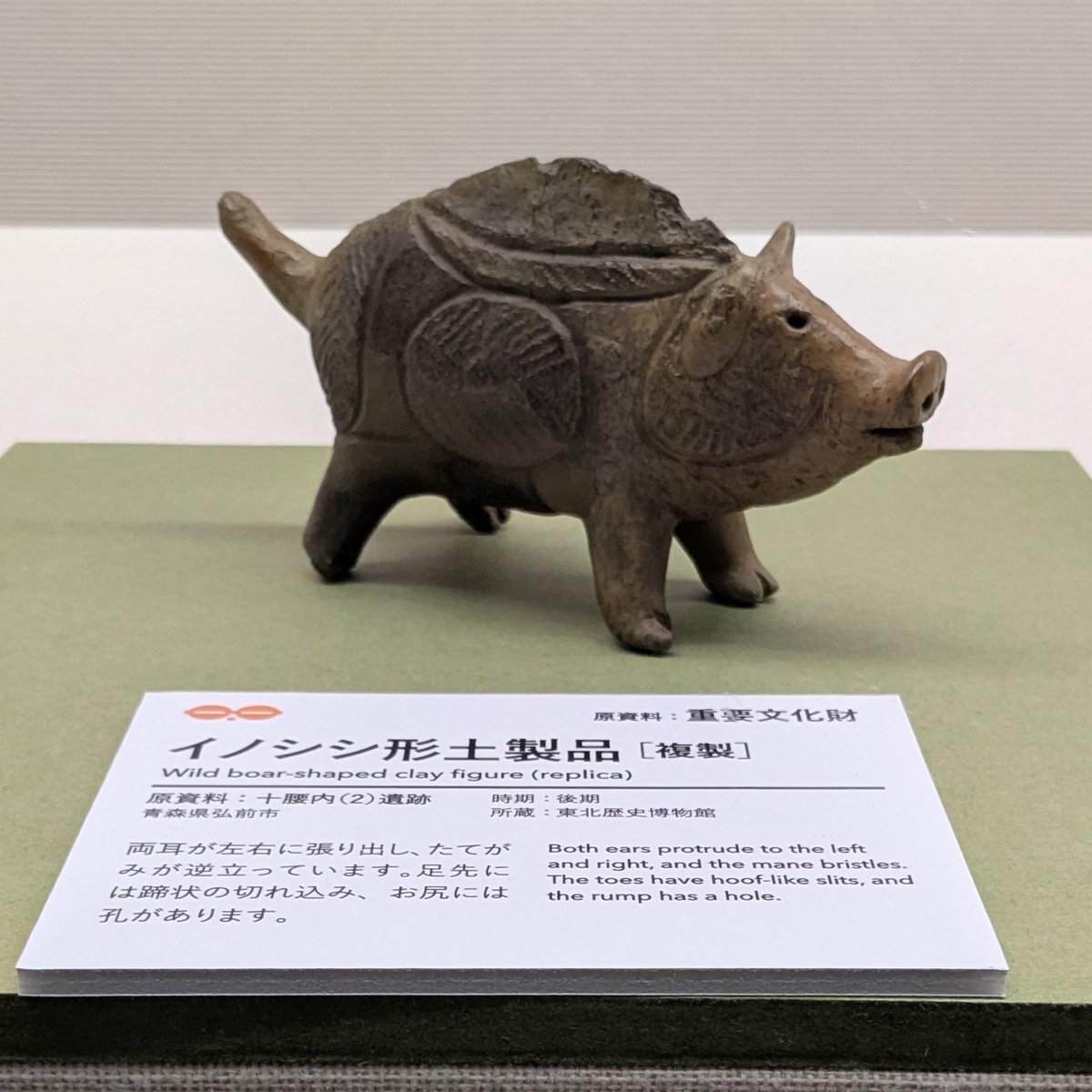 京都文化博物館の #縄文展 に行ってきました。お馴染みの遮光土偶も良かったのですが、今回の推しはムキッとした刺青の男に造形力ハンパないイノシシ。どーもくんみたいなどばん(土板)くん!本当に顔を現してるとか。5,000年前の日本も侮れない。 pic.x.com/kDasX7t3sr