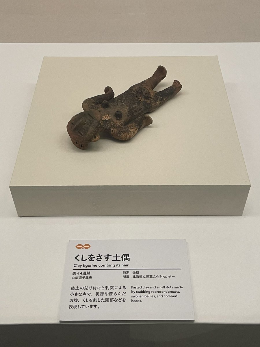 出土品を見ながら、縄文人の暮らしを想像するのが楽しかった。なぜ?と不思議、嘘だろがたくさん。かっくうや縄文の女神(写真なし)を、正面後ろ横からじっくり見られた。伊勢堂岱の板状土偶も。総じてゆっくり見て回れた。良かった。#縄文展 pic.x.com/Gh9XwGmcrQ