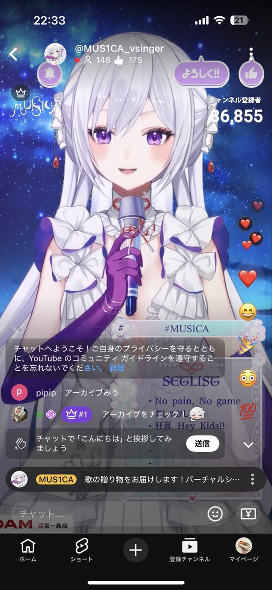 🟣配信スタートです! 【#歌枠】縦型歌枠┊︎ロックをクールに響かせます⚡️【#MUS1CA / #Vsinger / #shorts】 youtube.com/live/ZnJCaLIEo… @YouTubeより