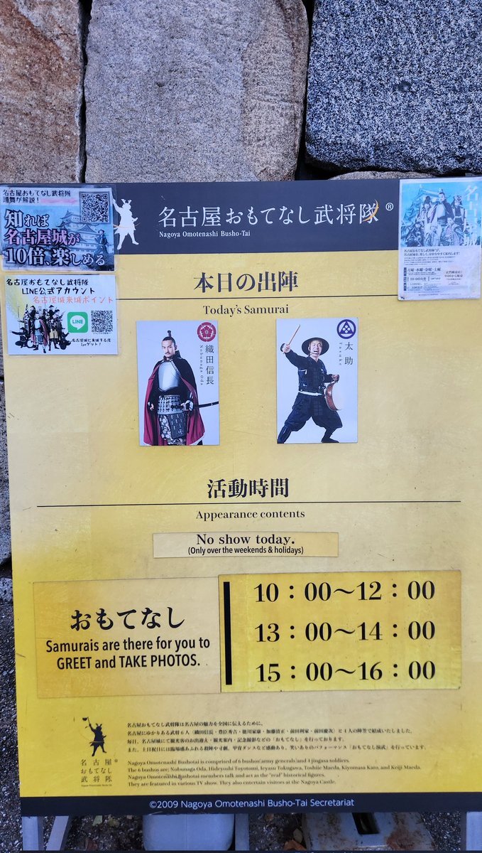 因みに明日は、信長様、#太助殿 のご出陣の様子。 名古屋観光にお見えの方、名古屋城にて、総工費150億円の、絢爛豪華な #名古屋城本丸御殿 と、戦国の日ノ本に名を轟かせ、今尚日ノ本の民に崇められる #織田信長公 のおもてなしを受けて見ては如何でしょうか。 pic.x.com/s5caeSu2sa