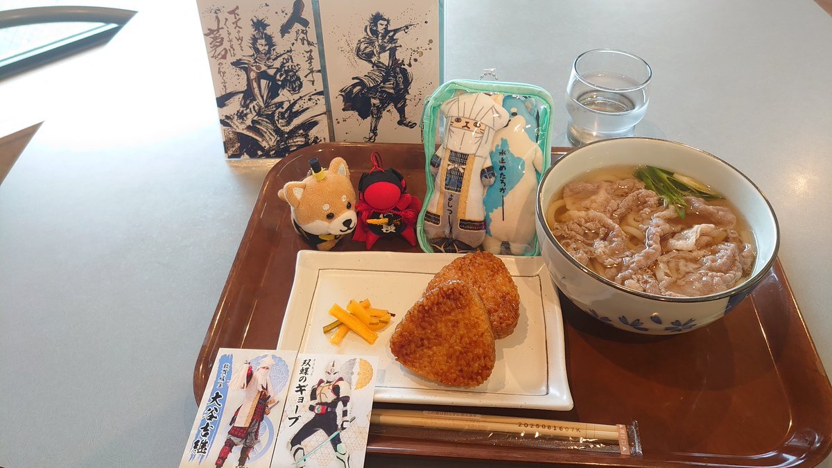 安土なう。信長まつりに初参陣!!! 考古学博物館まで来たら近江牛うどん食べれた♪ おおうつけうどんというらしいw 蘭丸、坊丸、力丸の森三兄弟?かわいすぎか!!! W刑部様に初謁見でござるー!!!!(幸) かっこよかったし、かわいかったな刑部様✨✨ #W刑部 #織田信長公 pic.x.com/X1AzO5hqiZ
