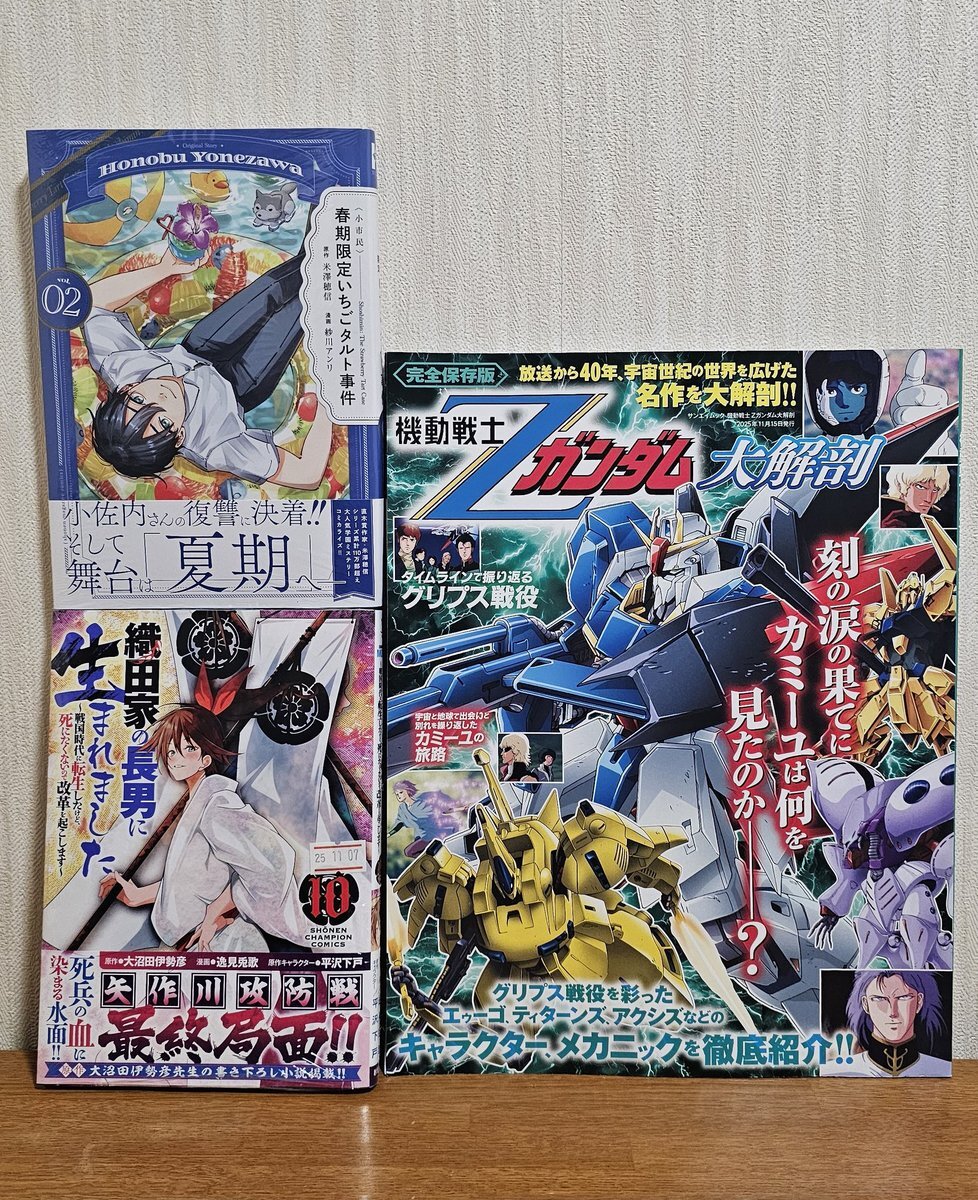 #今日買った漫画 とMOOK #織田家の長男に生まれました ~戦国時代に転生したけど、死にたくないので改革を起こします~ 10巻 #小市民 春期限定いちごタルト事件 2巻 #機動戦士Zガンダム大解剖 #戦国転生 #歴史転生 #ガンダム #マンガ pic.x.com/iUy0KIxmlz
