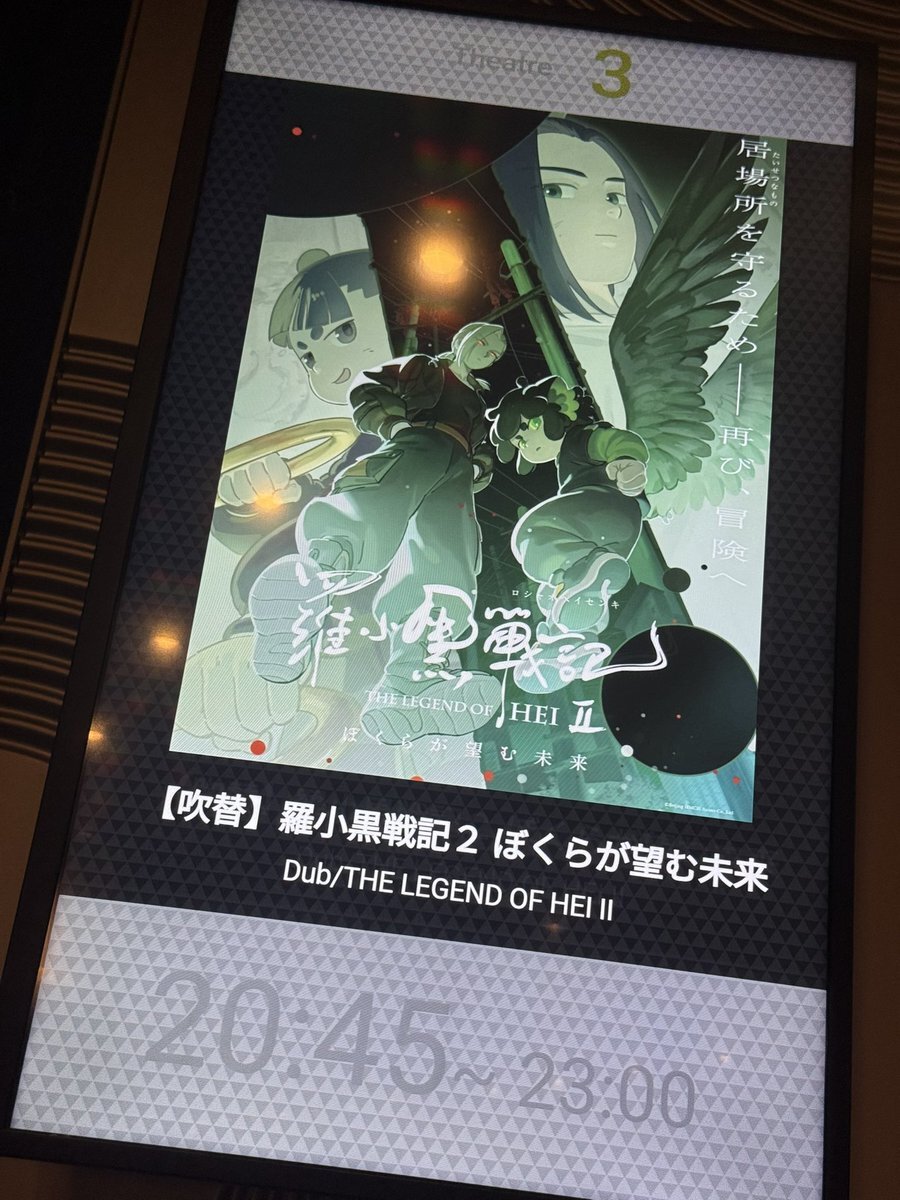 今日は、「TOHOシネマズ 上大岡」に行って、中国🇨🇳アニメ映画「罗小黑战记2 (中国語音声/日本語字幕版)」を観た! 小黑が成長して強くなってたし、无限は相変わらずチートキャラだし、鹿野はカッコいい女性だし、戦闘シーンが多くて面白かった! #羅小黒戦記2 #罗小黑战记2 pic.x.com/8wOWpN67gZ