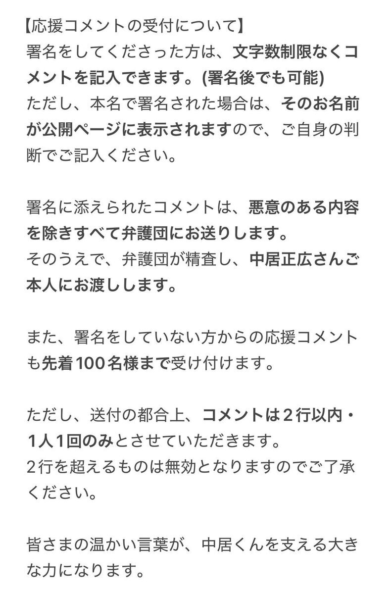 尚、すでに署名していただいている方も応援コメントの書き込みは出来ます。 注意事項もありますので、再度添付画像をご確認ください🙏 👉 署名【chng.it/n4stx2znjt】 ✅ 署名は1分 ✅ 拡散のご協力も大きな力です #中居正広 #署名活動 #中居くんの名誉回復 #中居くんの人権救済 #想いは届く pic.x.com/0ChblVXSqC