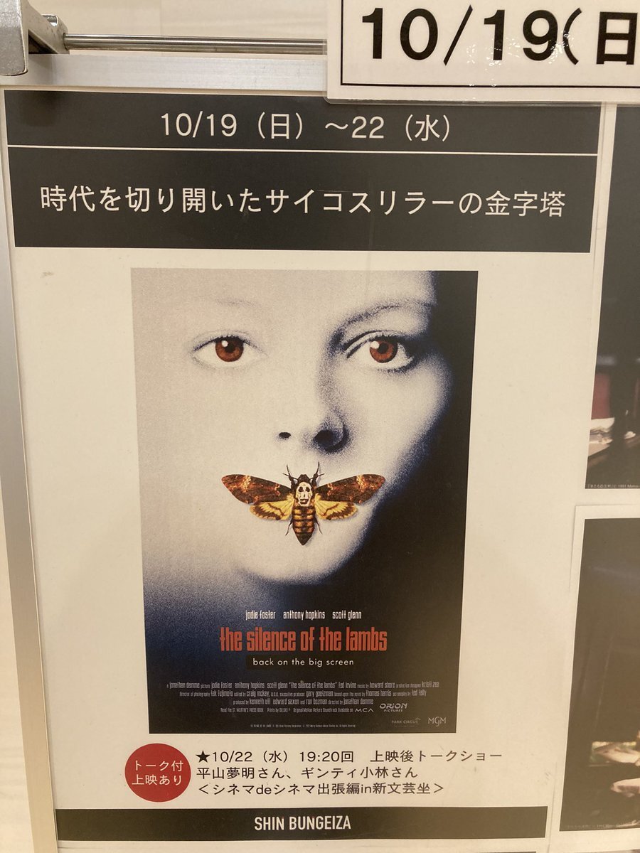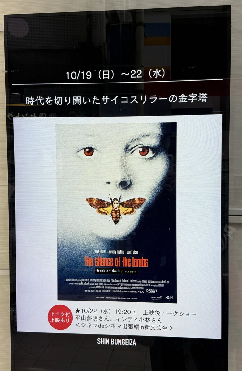 【本日はこちら】 10/22(水)19:20〜『#羊たちの沈黙』 上映後、シネマdeシネマ出張トークがございます👍 お席埋まってきていますのでお早めに! x.com/shin_bungeiza/…
