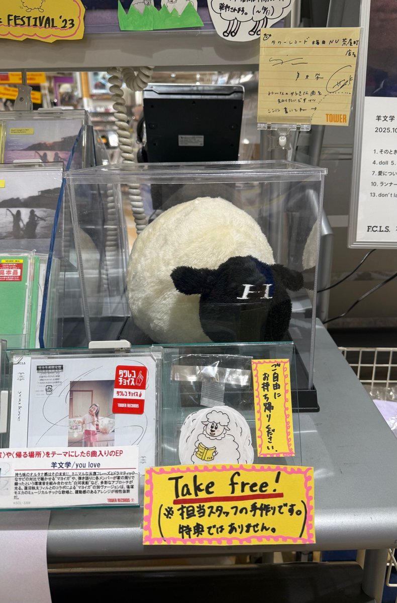 #羊文学(@hitsujibungaku)】 『D o n' t L a u g h I t O f f』 #羊文学武道館 お疲れさまでした‼️ 今日も元気に「#ひつじちゃん」がお出迎え⭐️ 手作りイラスト配布中‼️ 🐑先着特典:ステッカー 🐑特別レシート発行(~10/13) 🐑「SPRING TOUR 2026」抽選シリアル封入 #Hitsujibungaku #羊文学_DLIO pic.x.com/8CspSNIV9N