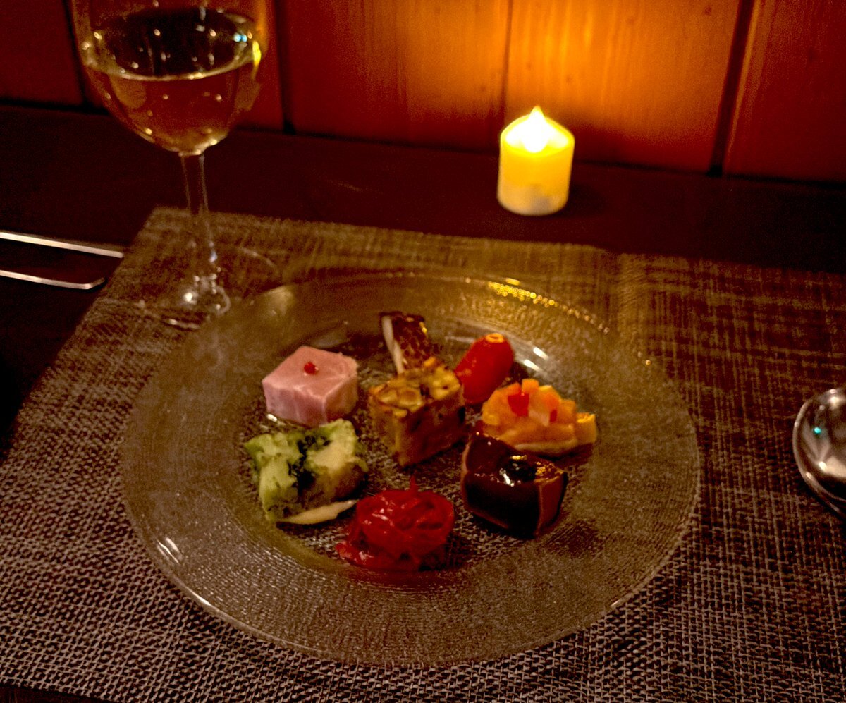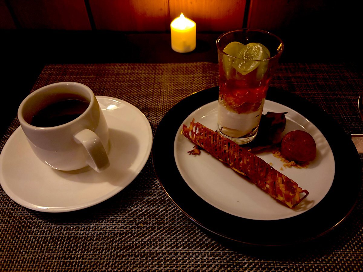 シャインマスカットのヴェリーヌ仕立て、黒イチヂクのシャーベット、佐渡産米粉のロールクッキー、佐渡に自生するハーブ黒文字のハーブティー 佐渡を丸ごといただいた。すばらしい。シェフを呼びたい。 #羊旅新潟 pic.x.com/WA1oB38PYD