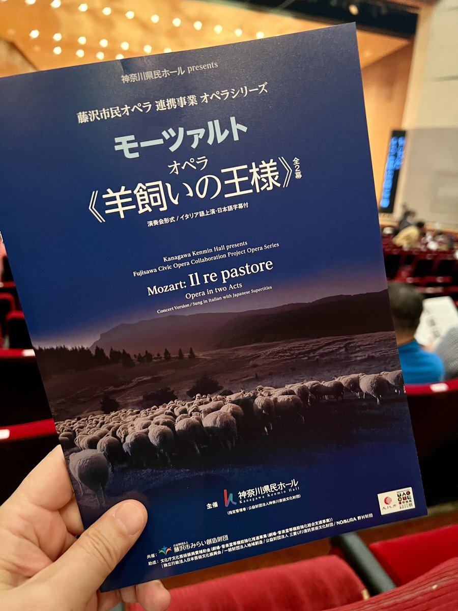 「真の高貴さは血筋ではなく、心にある」 今日は、神奈川県民ホールと #藤沢市民オペラ 連携事業としてのモーツァルトのオペラ『#羊飼いの王様 』を聴きに、#藤沢市民会館 大ホールへ。 同オペラ芸術監督の #園田隆一郎 マエストロ指揮、#神奈川フィルハーモニー管弦楽団 と #矢野雄太 pic.x.com/VcOjIePAd3