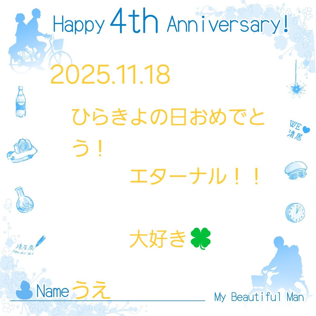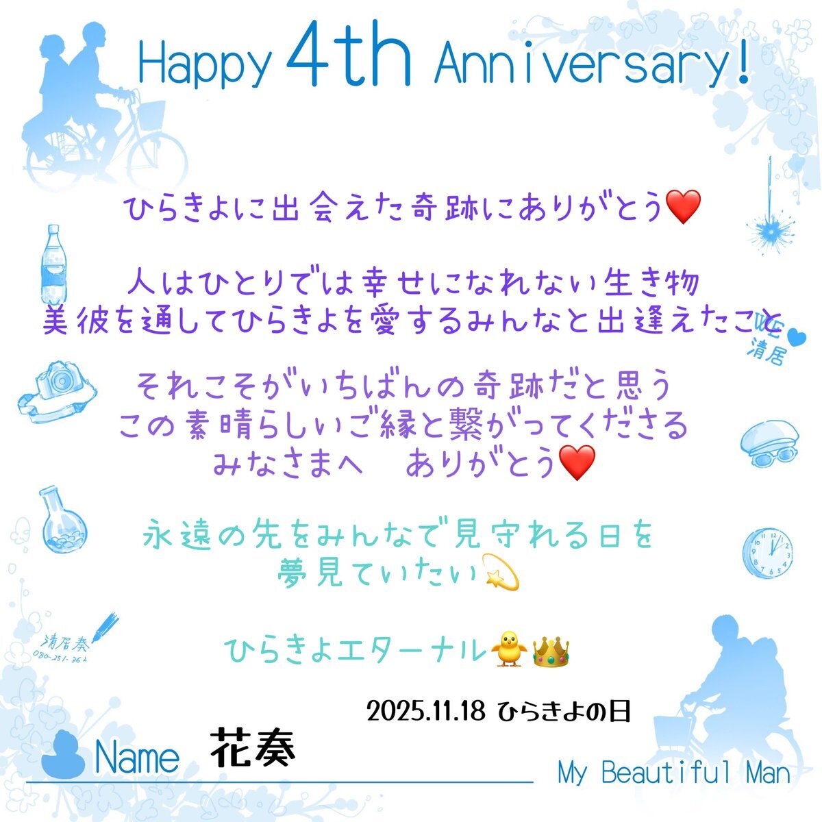 4周年おめでとうございます👏 今年もお祝い出来て幸せです🥹 素敵なカードお借りしました、ありがとうございます #ひらきよの日 #美しい彼 #美しい彼ファンアートメッセージ2025 pic.x.com/8hLvV0m5Yc