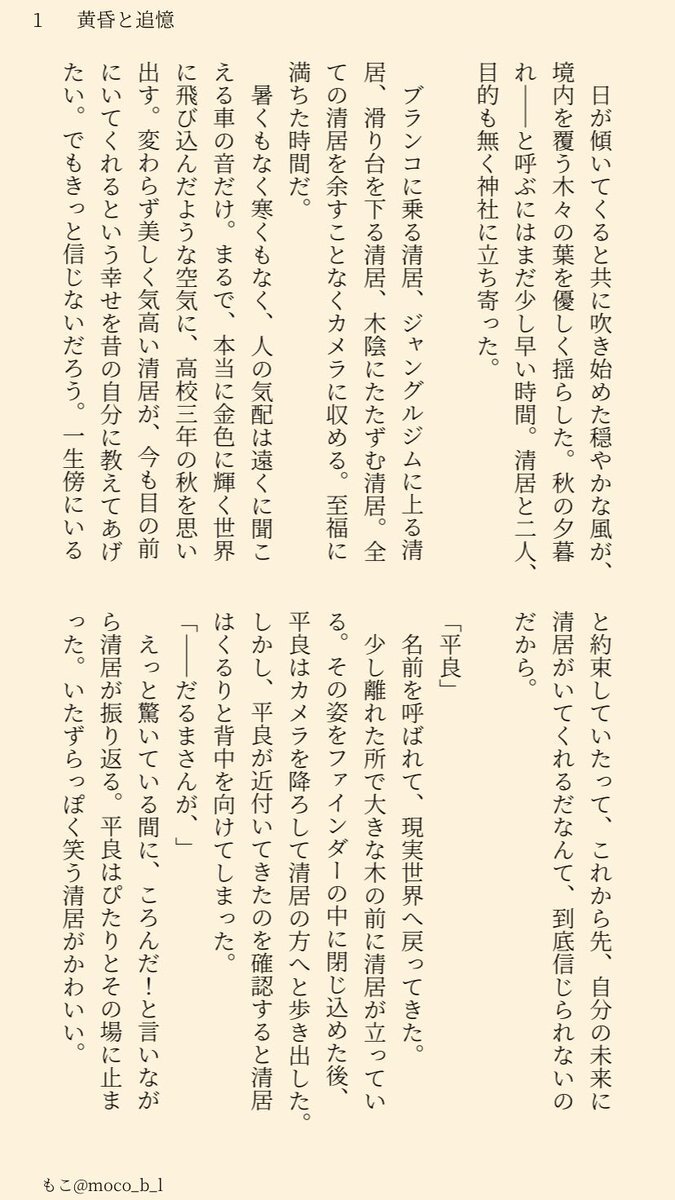 『黄昏と追憶』 エターナル後の二人が仲良くお散歩デートみたいなことしながらお家に帰る平和なお話。平良視点。7p #美しい彼ファンアートメッセージ2024 #ひらきよの日 3周年おめでとうございます🥳