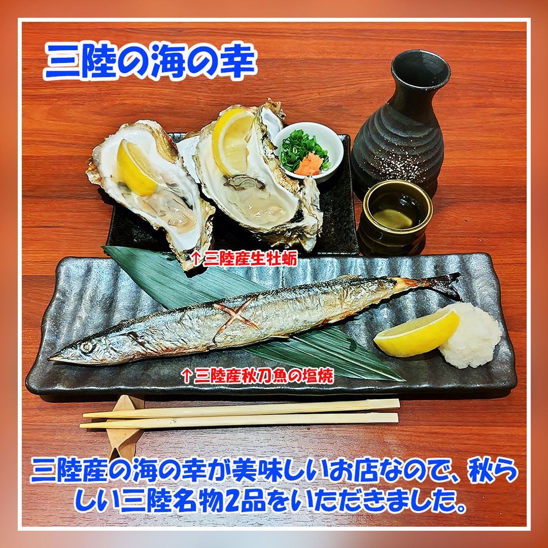 最後に三陸らしい海の幸として #三陸産生牡蠣 と #三陸産秋刀魚の塩焼 を注文。 牡蠣は大粒で、レモン汁の酸味ともみじおろしの刺激と共にいただきました。 秋刀魚は脂がのって汁が溢れ出て、醤油をかけた大根おろしを添えていただきました。 #拡散希望 #美味しいを伝える #宴スタグラム #仙台海蔵 pic.x.com/lOh0V6flVJ