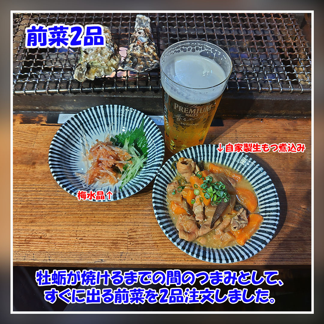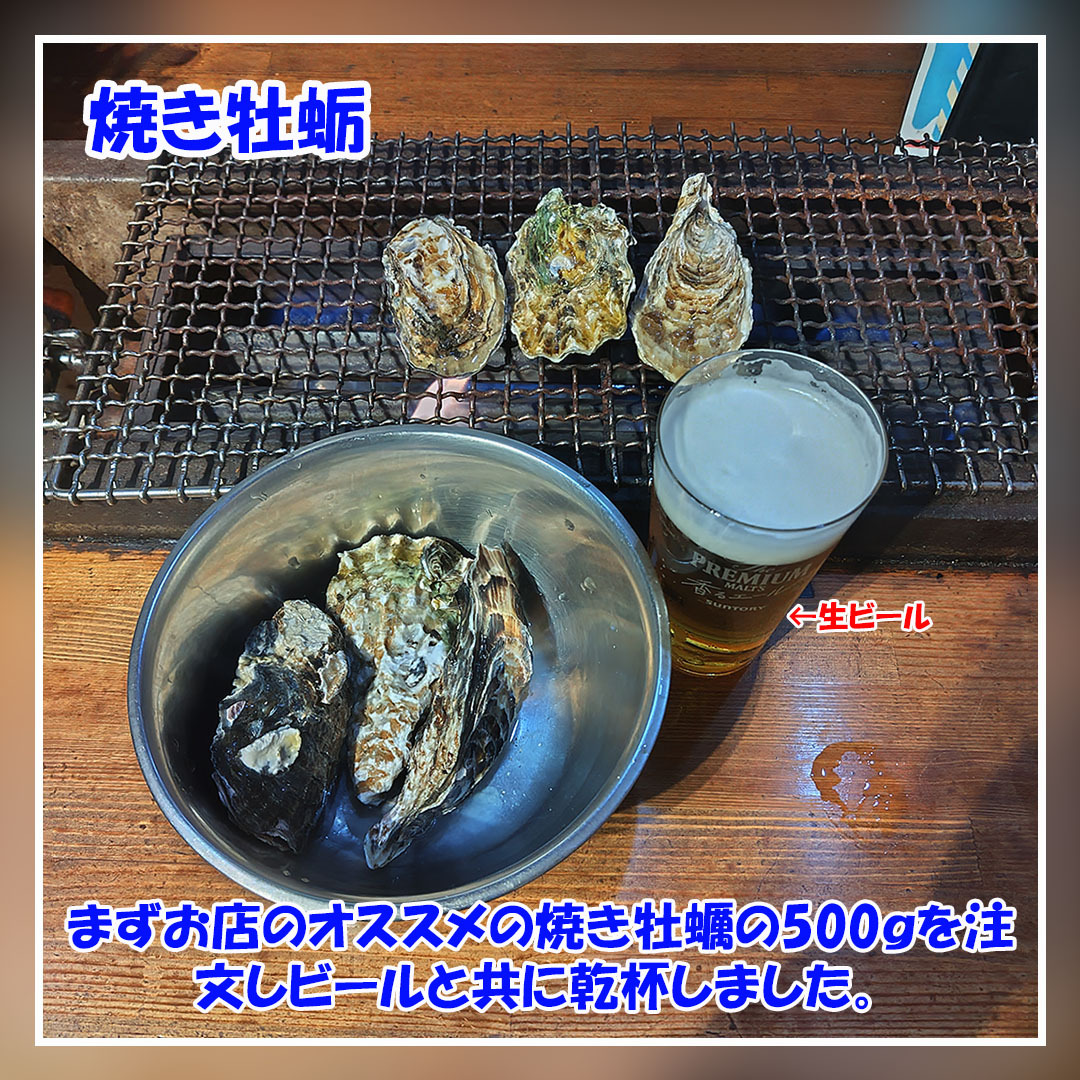今回は近所の #かき小屋 です。 まず生ビールと #焼き牡蠣 を注文し乾杯。 牡蛎が焼けるまで #自家製生もつ煮込み #梅水晶 を注文。 牡蛎が焼けてきたら殻を剥いて牡蛎醤油をかけていただきます。 牡蛎の香りと牡蛎醤油の香ばしさが美味しかったです。 #拡散希望 #美味しいを伝える #宴スタグラム pic.x.com/JJKVpLpNuS