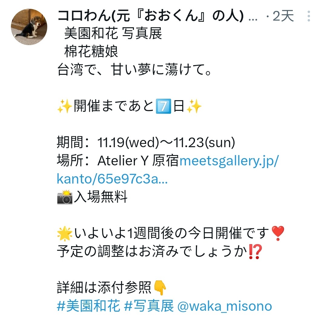 🫧美園和花 写真展🫧 🫧棉花糖娘🫧 台湾で、甘い夢に蕩けて。 ✨開催まであと3⃣日✨ 期間:11.19(wed)〜11.23(sun) 場所:Atelier Y 原宿y-atelier.themedia.jp 📸入場無料 💫予定はお決まりですか⁉️ 沢山の素敵な写真がお迎えしてくれます💖 詳細は添付参照👇 #美園和花 #写真展 @waka_misono pic.x.com/elTGp06q8D