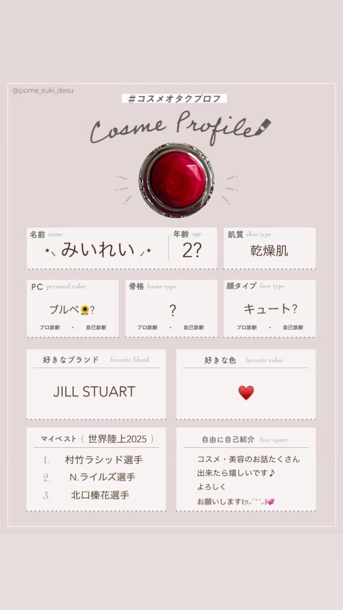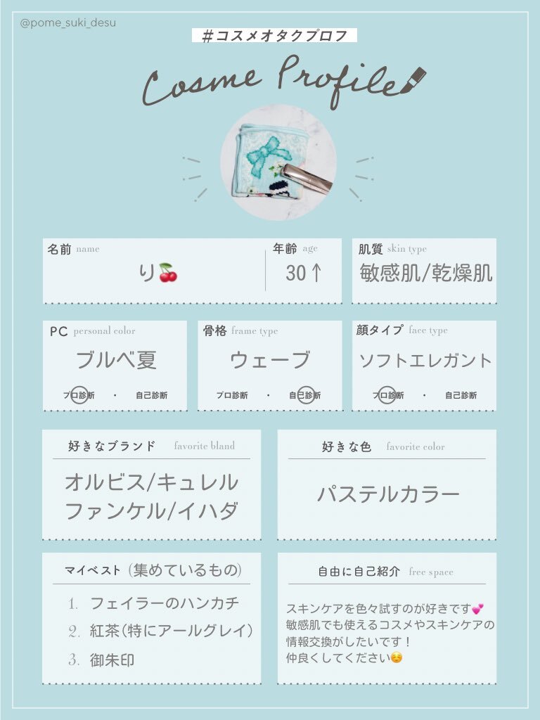 作ってみたかったプロフ完成🙆♀️ 使っているものはころころ変わるので1枚目だけ! ❤️orRTでゆっくりお迎えに行きます🎶 #コスメオタクプロフ #美容垢さんと繋がりたい #美容好きさんと繋がりたい