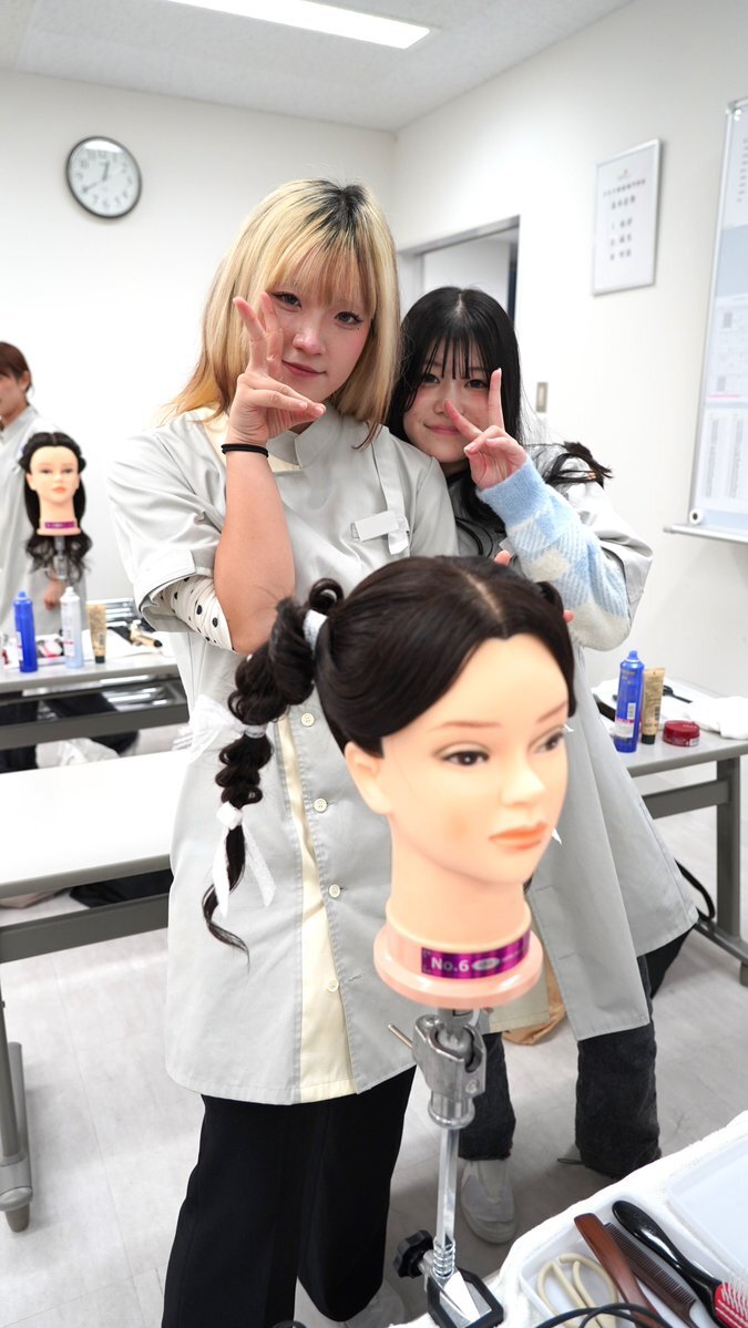 1年生のヘアスタイリストコース、今日はアップスタイルのテストでした💨みんなとっても上手でした💮✨! #美容学校 #美容専門学校 #美容学生 #美容学生の日常 #美容師になりたい #東京の美容学校 #ヘアアレンジ #アップスタイル pic.x.com/1RsywPI2iv