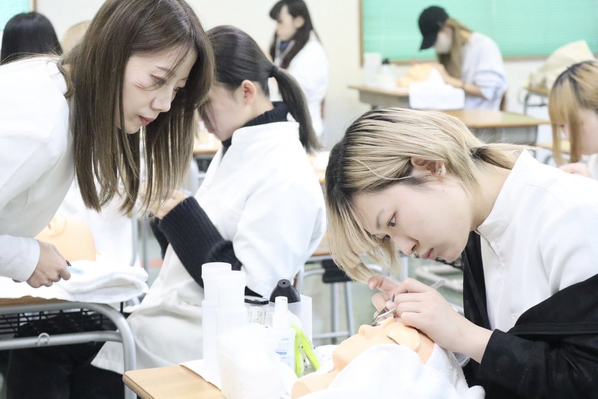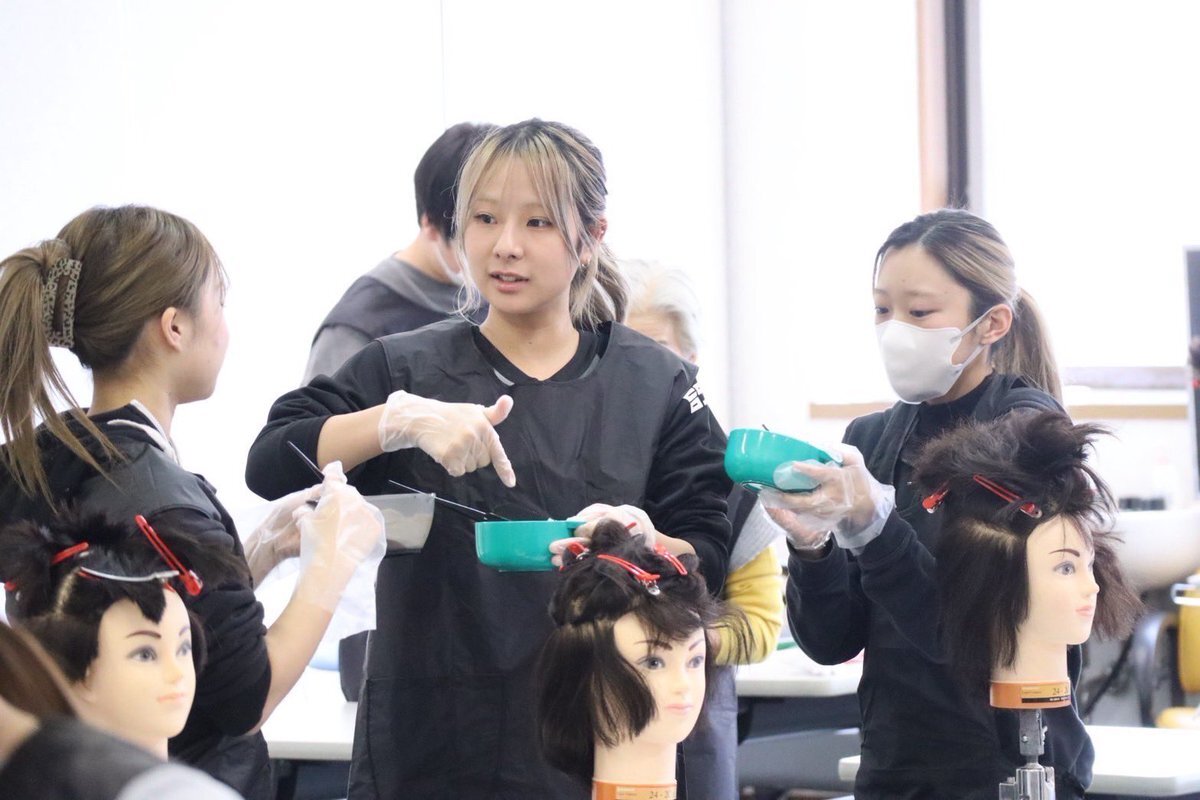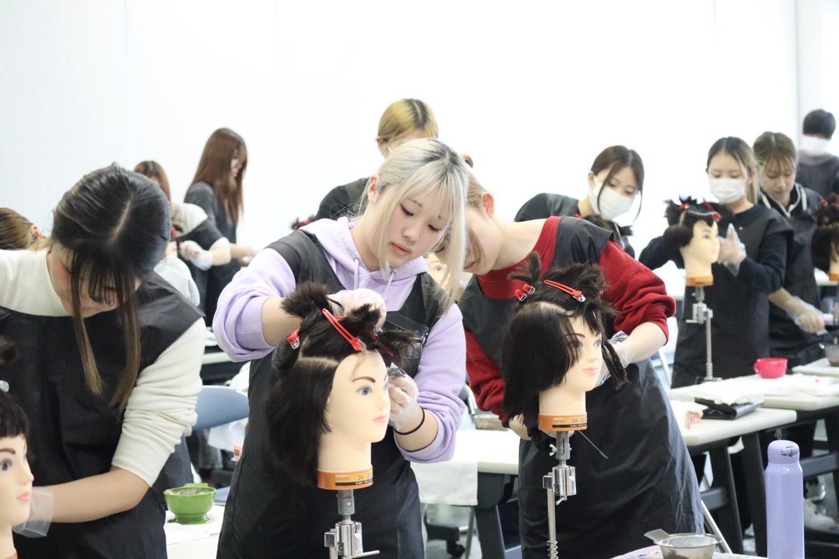 美容科1年生のカラー実習の様子をお届けしていきます👩🏻‍🦰🤎 はじめてのカラーだったので、基本となるワンカラー☝🏻それぞれ、好きな色をウィッグに塗布しました🤗手つきは初めてとは思えないほど上手でした❣️さすが、美容学生👏🏻 みんな楽しそうな授業でした✨ #美容専門学校 #ヘアカラー pic.x.com/YcAOyxATvS