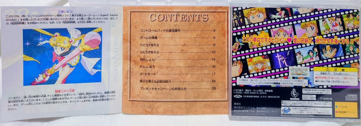 本日11月29日(1996年)は セガサターン用ゲーム 美少女戦士セーラームーンSuperS Various Emotionの発売日 発売おめでと〜🎂 画像はSS版パッケージ説明書より抜粋 #レトロコンシューマー愛好会 #セーラームーン #セガサターン #美少女戦士セーラームーン pic.x.com/YGEFEPixto