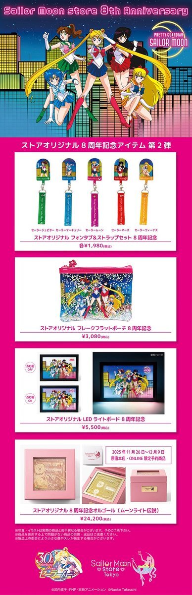 【#SailorMoonstoreONLINE】 🌙本日11/27(木)販売開始🌙 11月新商品はこちら♡ sailormoon-store.com/shop/e/eev-new… 是非チェックしてください! 🛒Sailor Moon store ONLINEはこちら⬇️ sailormoon-store.com/shop/default.a… #美少女戦士セーラームーン #セーラームーンストア #SailorMoonstore #PrettyGuardianSailorMoon pic.x.com/6PLJ0ReBrB