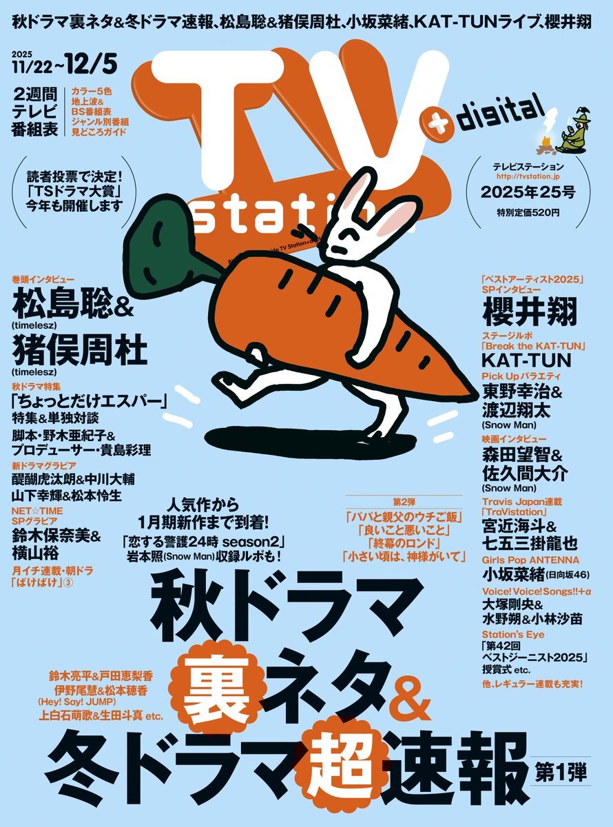 TVstation25号①【11/19発売】 秋ドラマ裏ネタ&新ドラマ速報 脚本 #野木亜紀子 &プロデューサー #貴島彩理 #ちょっとだけエスパー 単独インタビュー Girls Pop ANTENNA #小坂菜緒 #日向坂46 Voice!Voice!Songs!!+α #大塚剛央 & #水野朔 & #小林沙苗 koi-men #山下幸輝 & #松本怜生