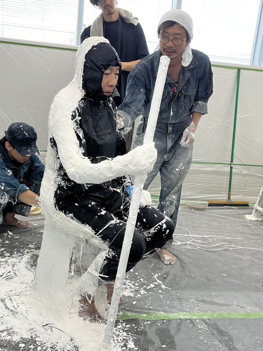 #千葉国際芸術祭2025 ではさまざまなアートプロジェクトが開催されています。 #千葉市動物公園 に関係しているアートプロジェクトについてホームページでご紹介しています♪ city.chiba.jp/zoo/event/art_… みなさん、鑑賞してくださいね!画像は『脱皮的彫刻』を体験した園長です!(企)