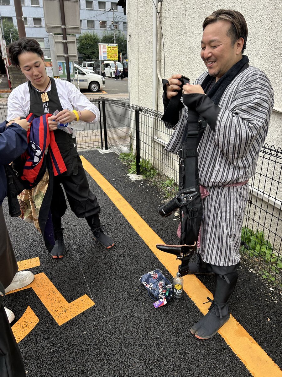 生涯最後の二本旗に備えてベルトの調整中 師匠と弟子のツーショット😁 #今村翔吾 #羽州ぼろ鳶組 #師弟関係 pic.x.com/5j00KWG5vx
