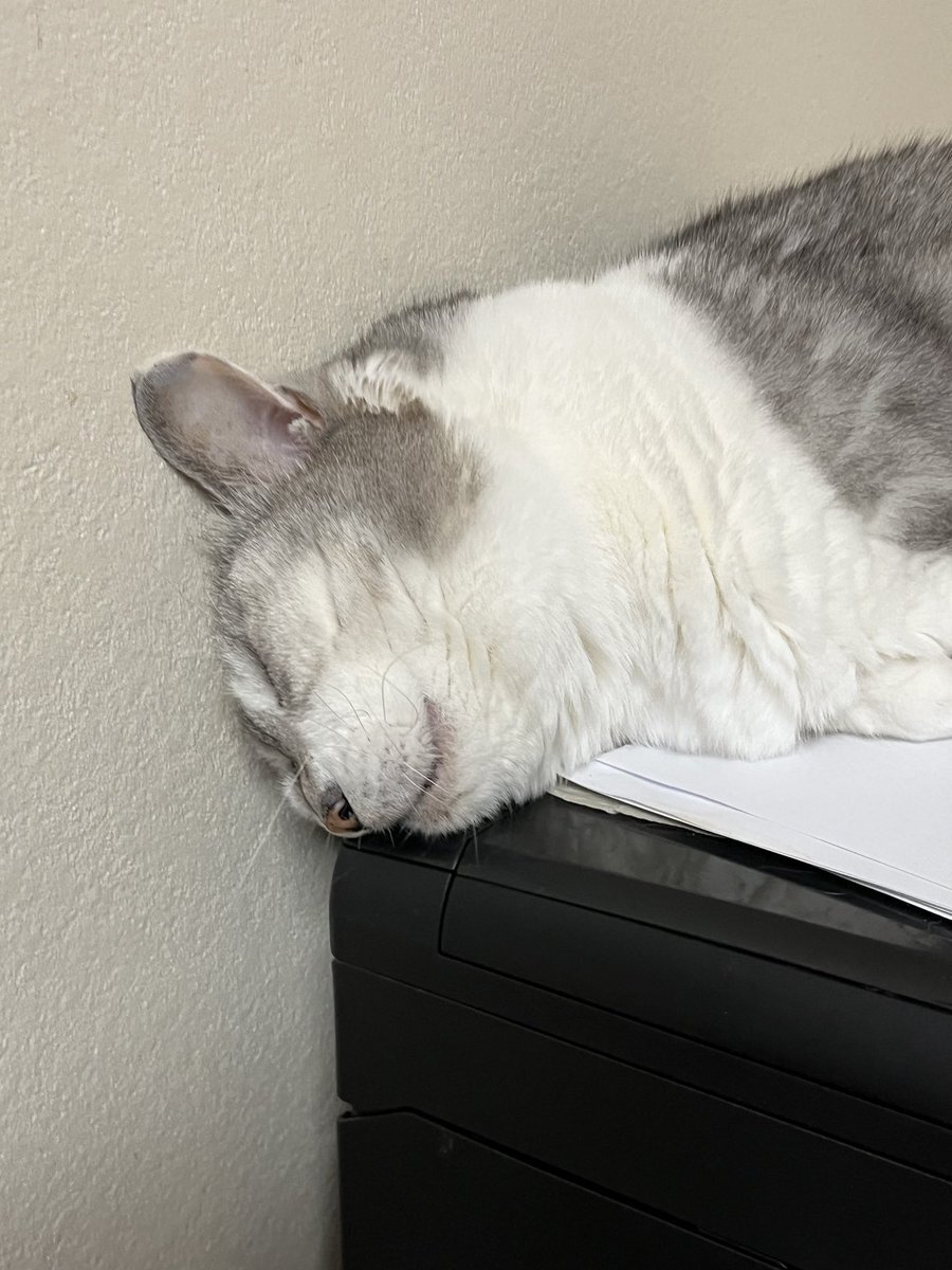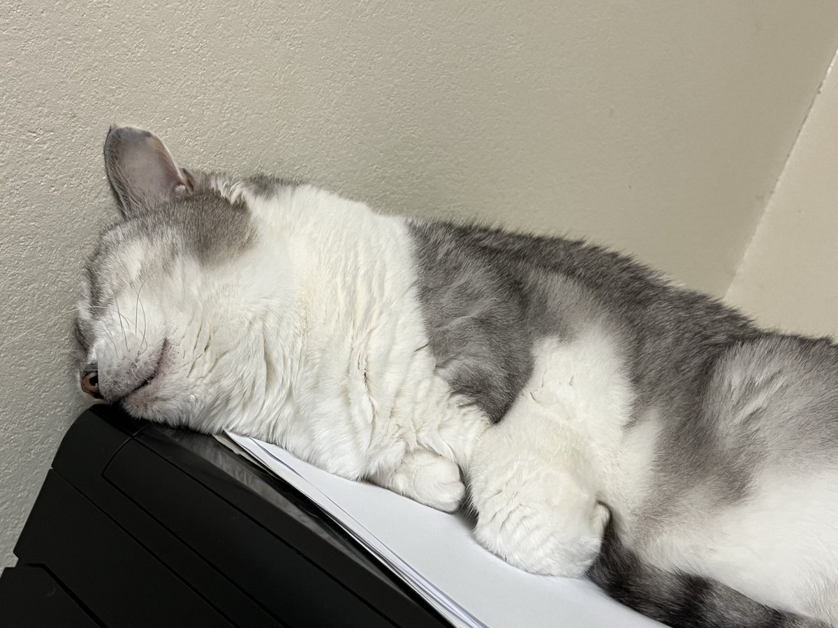 今日のニャンズ 今日はユメさんとミケ ユメさん、あなたが乗ってるのはコピー機なんですけど…😅 ミケさん、その姿😱 #羽生クラスタネコ部 #羽生くんネコをどうぞ pic.x.com/e9tIjc9agL