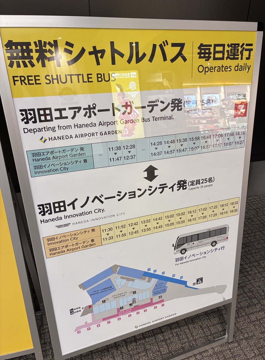 羽田エアポートガーデンと羽田イノベーションシティ間は、無料シャトルバスがあるのを知らずに歩いてしまった!! #羽田空港 #シャトルバス #無料 #時刻表 #羽田エアポートガーデン pic.x.com/UylOiOTxAk