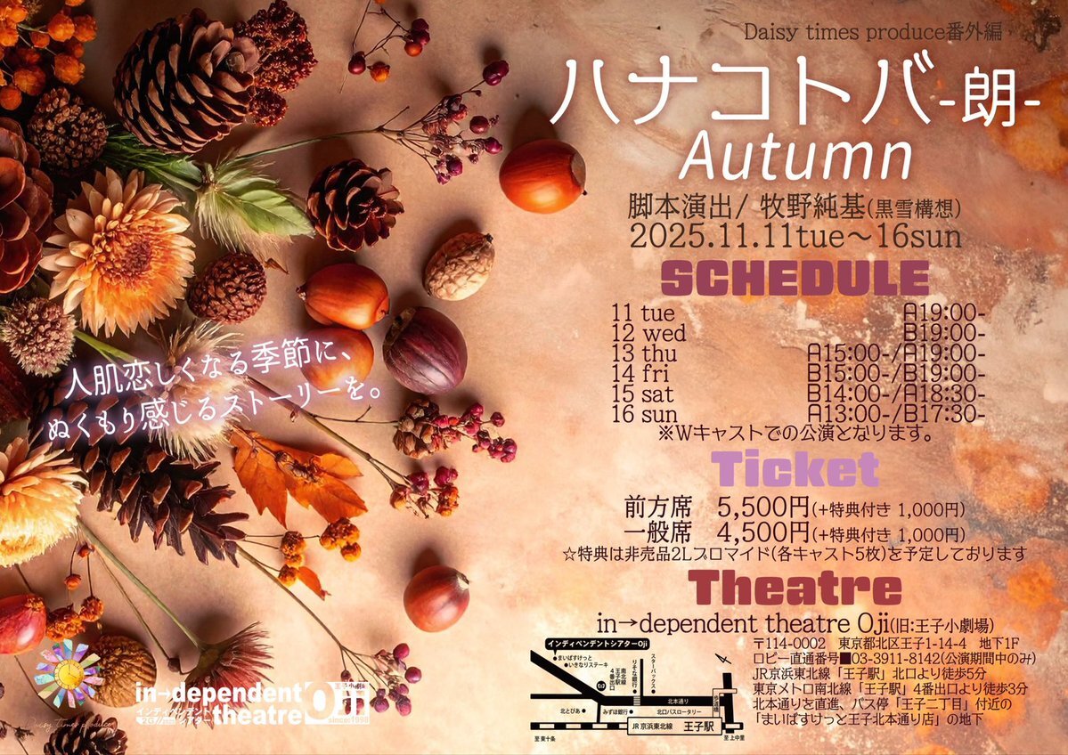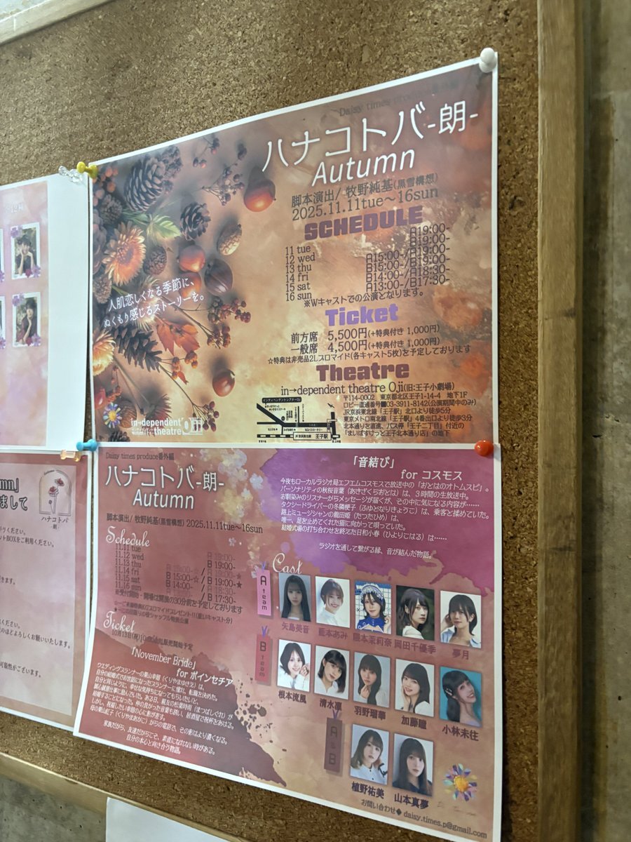 おはようପ(∩'͈ ᐜ '͈∩)ଓ 今日はーっ15:00-と19:00-の2公演🍵🍂 昼の回はご来場特典のブロマイドプレゼント会で、夜公演は役シャッフル公演だよ~☺️💪 駆け込みでもお待ちしています🪽💨 インディペンデントシアターOjiでまってるね💙気をつけてきてねー!!!🎀📗 #ハナコトバ朗