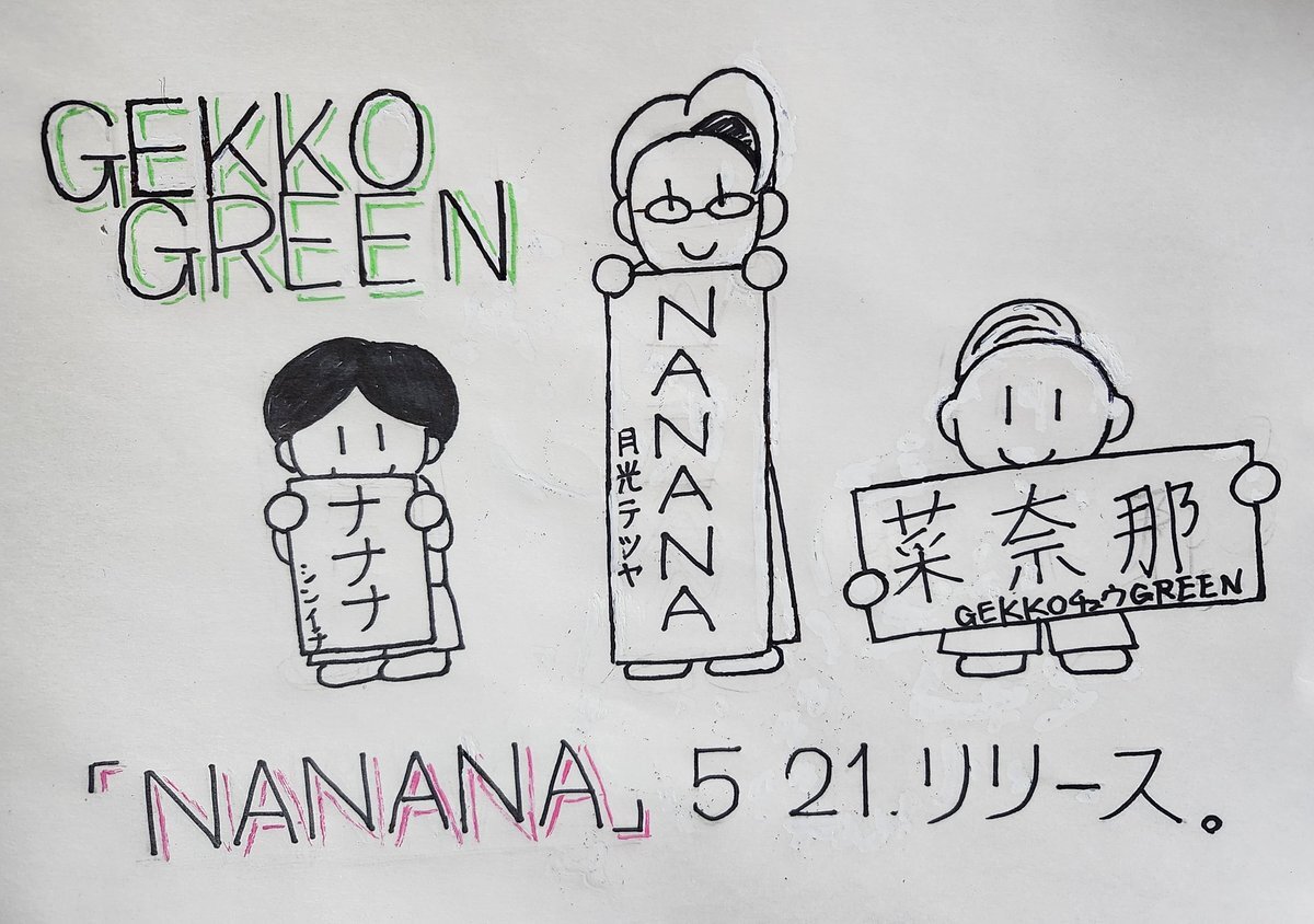 #GEKKOGREEN #5ヶ月連続配信リリース #NANANA をイメージして #イラストを描きました。 題して 「#書家GEKKOGREEN に #自由に #新曲タイトル #書かせてみた。」 #良い感じに #個性バラバラ な 3人なので 同じお題でもこんな風に #それぞれの良さ が #大爆発 するんじゃないかな #月光グリーン x.com/GekkoGreen_/st…