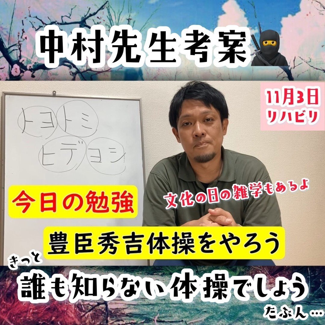 今日も一日お疲れさま!🌃 今日の #習字の日、さとし先生の文字は読めた? いつも いいね💓ありがとうね! さて明日は祝日 #文化の日!さとし先生の真面目な歴史の話と、中村先生の誰も知らない謎体操の豪華二本立てだよ😆デイサービスのレクにおススメ✨ つづく👇 pic.x.com/Ijad9oHLRp