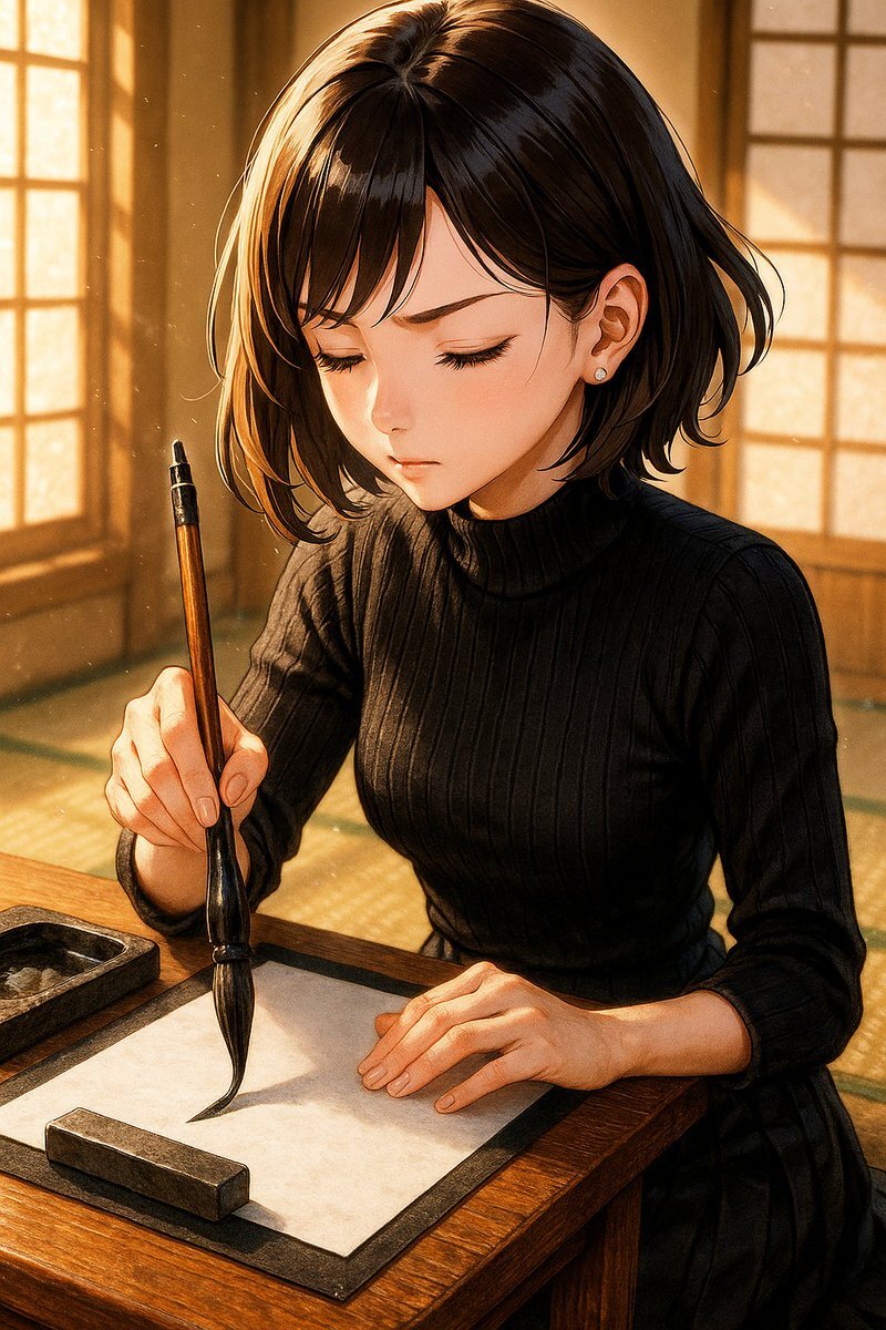 今日のテーマ:「習字美女」11/02は習字の日|怠目藍成(あいなる)|AI美女・AIイラスト勉強中 @darumeainaru note.com/darume_ainaru/… #あいなるAI美女生成テーマ日記 #AI美女 #AIイラスト #習字の日 #今日は習字の日