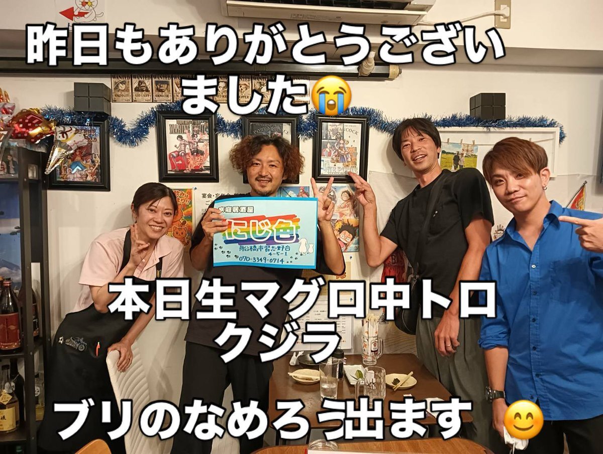 こんにちは家庭居酒屋にじ色です! 本日で一周年から4日目となります! 千葉ロッテも頑張ってるので、にじ色も頑張りますぞ🫡 #習志野台 #千葉ロッテマリーンズ #サザンオールスターズ #飲食店 #居酒屋 #北習志野 #薬園台 #船橋グルメ #宴会 #飲食店 #一人飲み #一周年 #昼飲み #ランチ pic.x.com/YjJpCwnOVn