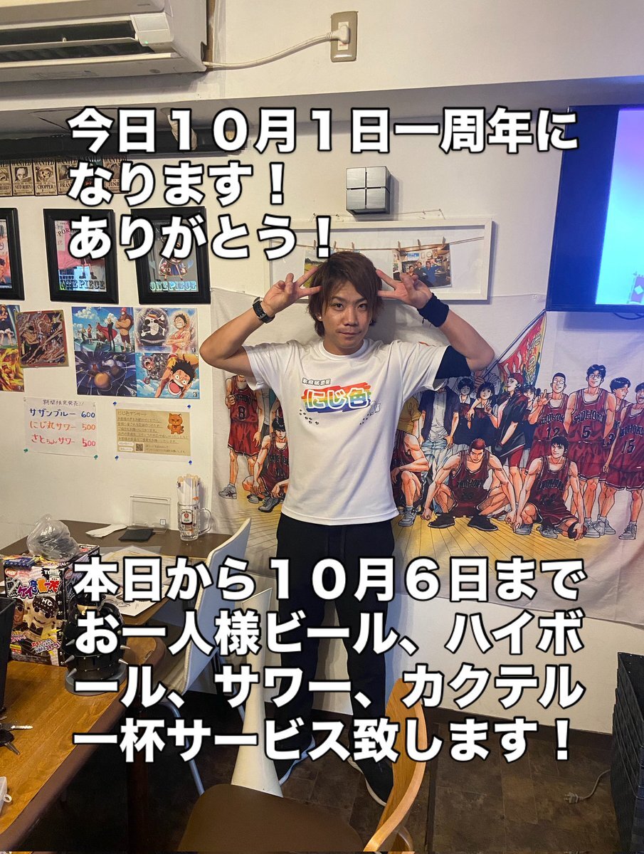 こんにちは家庭居酒屋にじ色です! 今日10月1日で1周年となりました!これからもよろしくお願いいたします😊 #北習志野 #習志野台 #居酒屋 #家庭居酒屋にじ色 #船橋市グルメ #サザンオールスターズ #千葉ロッテマリーンズ #宴会 #からあげ #薬円台 pic.x.com/z2paw5trzI