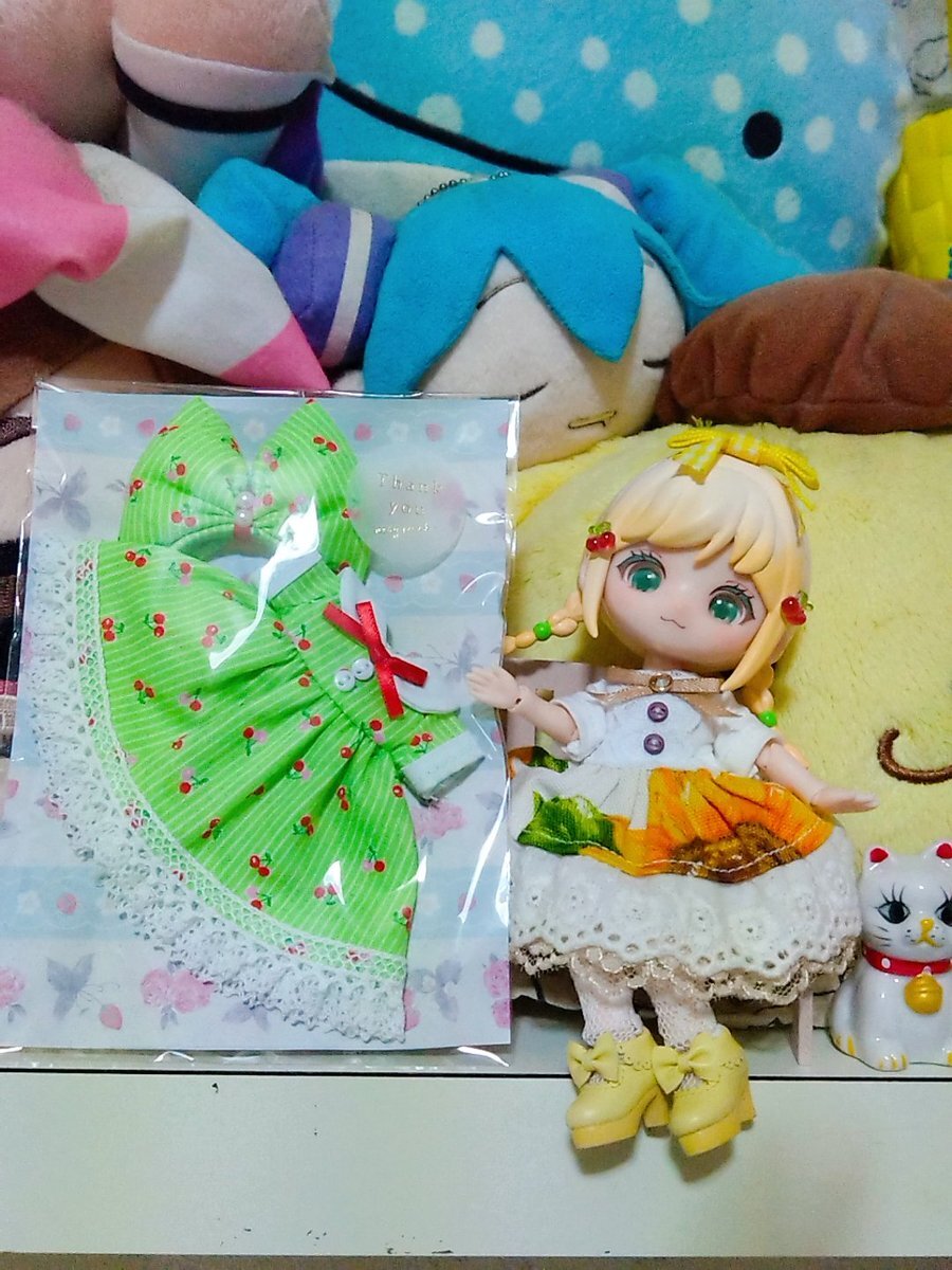 ちろりさん(@saaaaaxxx24)から さくらんぼのワンピースセットを お迎えしました👗✨ この前翠ちゃんに さくらんぼの飾りを付けたから このワンピースにピッタリ🍒´- ありがとうございました🙌✨ #翠ちゃんと一緒 #ちろり服 pic.x.com/PVrbRYox6F
