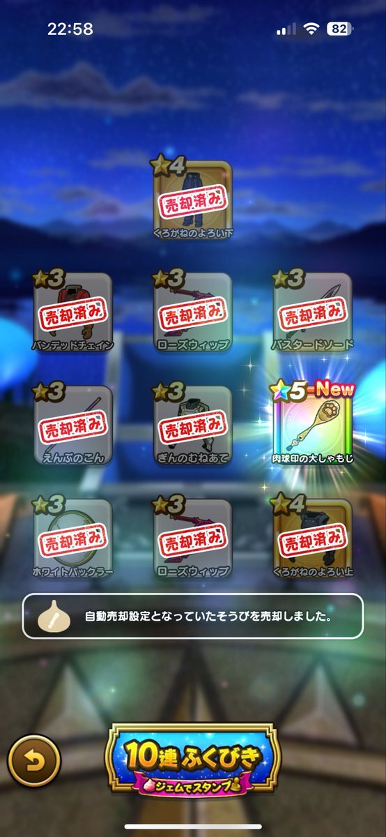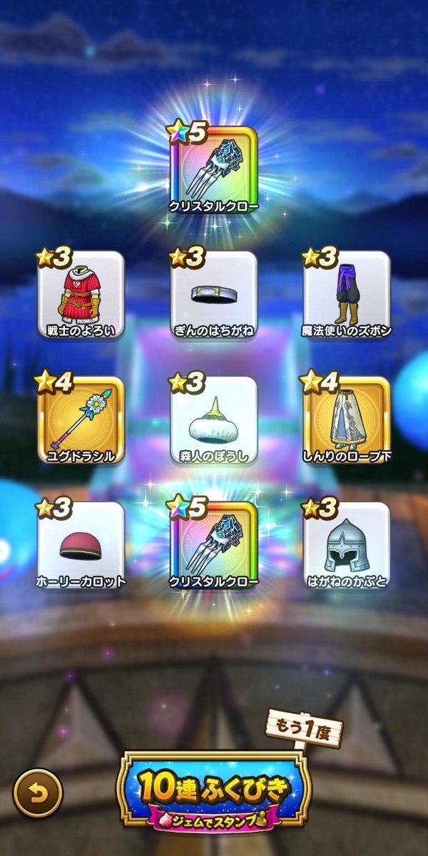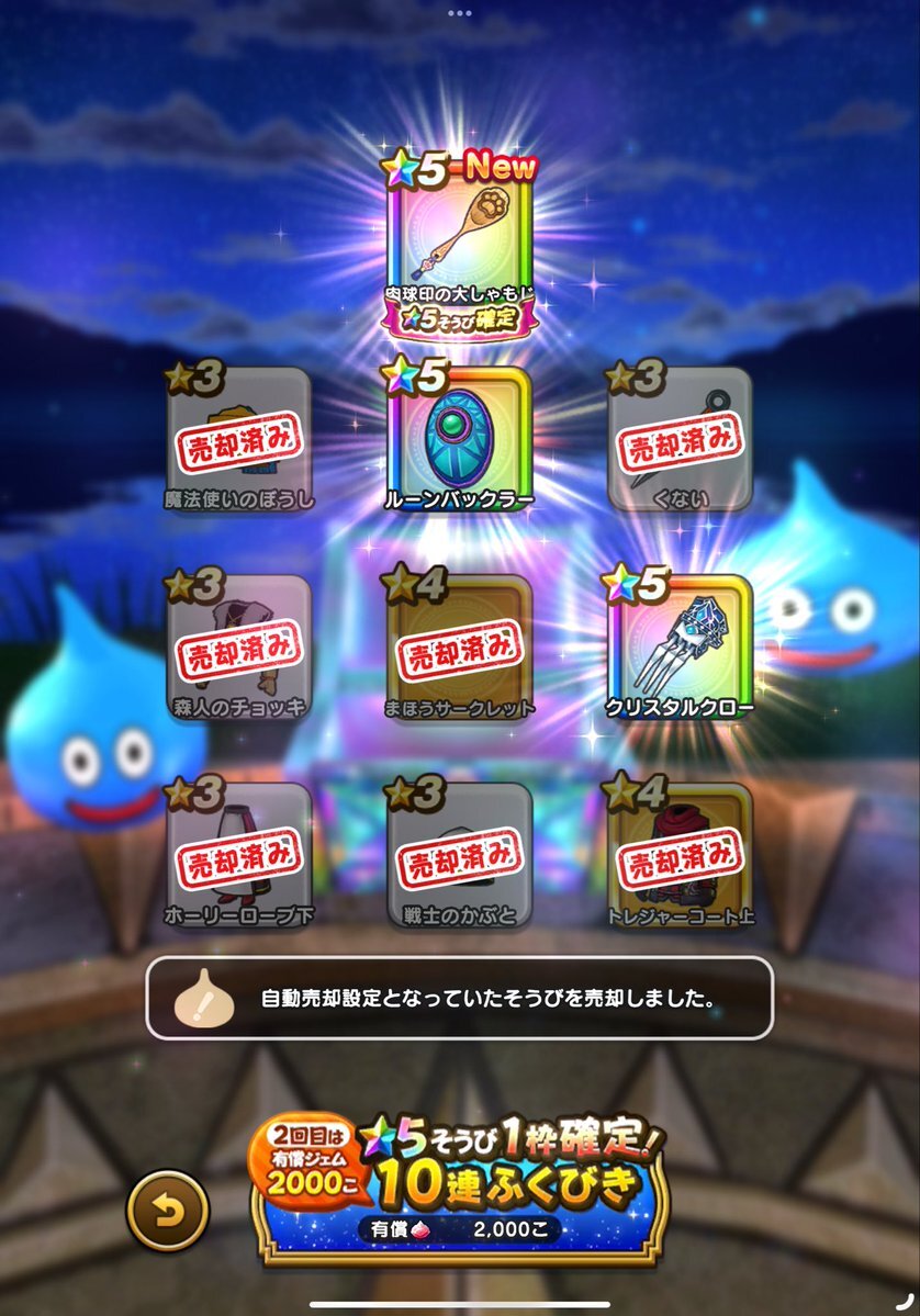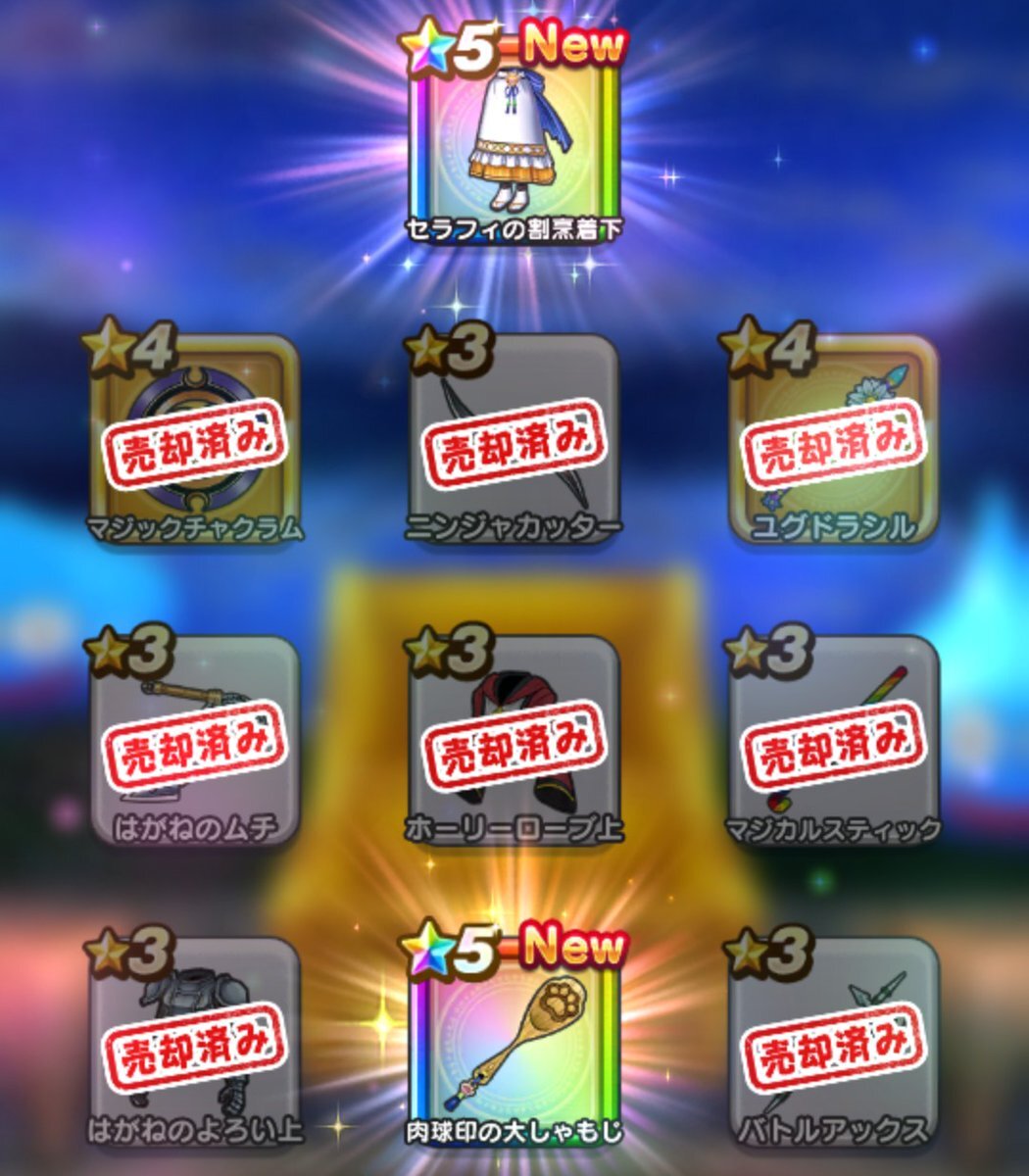管理人さんセラフィ装備ふくびき マイレージ10連 なんとしゃもじがまた当たりましたw🙌 武器と割烹着上が2個ずつとなりましたw🙌✨ #ドラクエウォーク #肉球印の大しゃもじ #スラミチ pic.x.com/Z19TicKBse