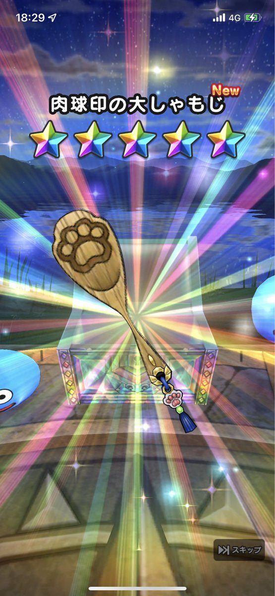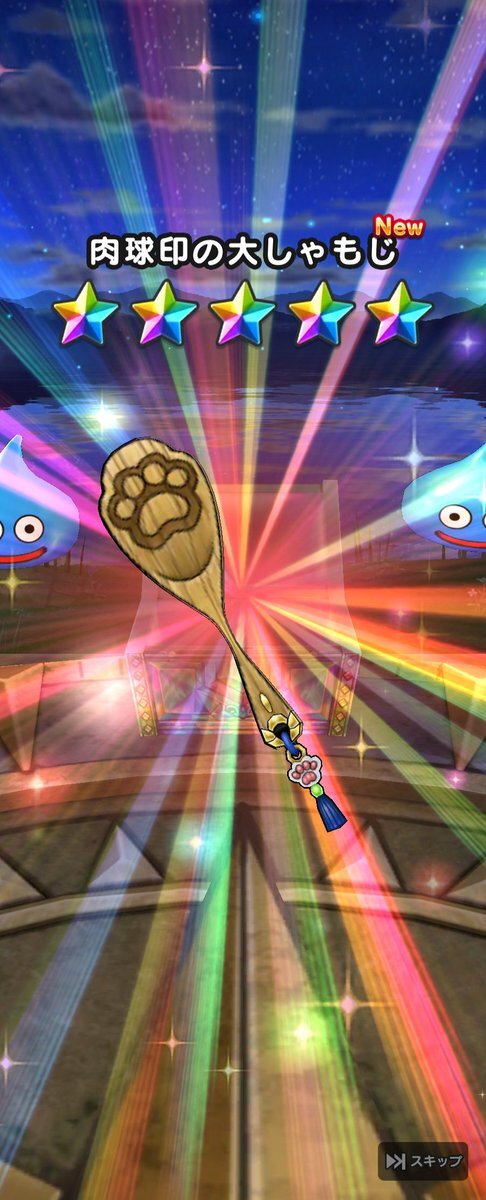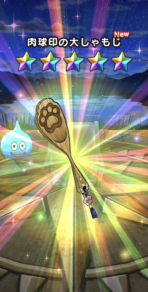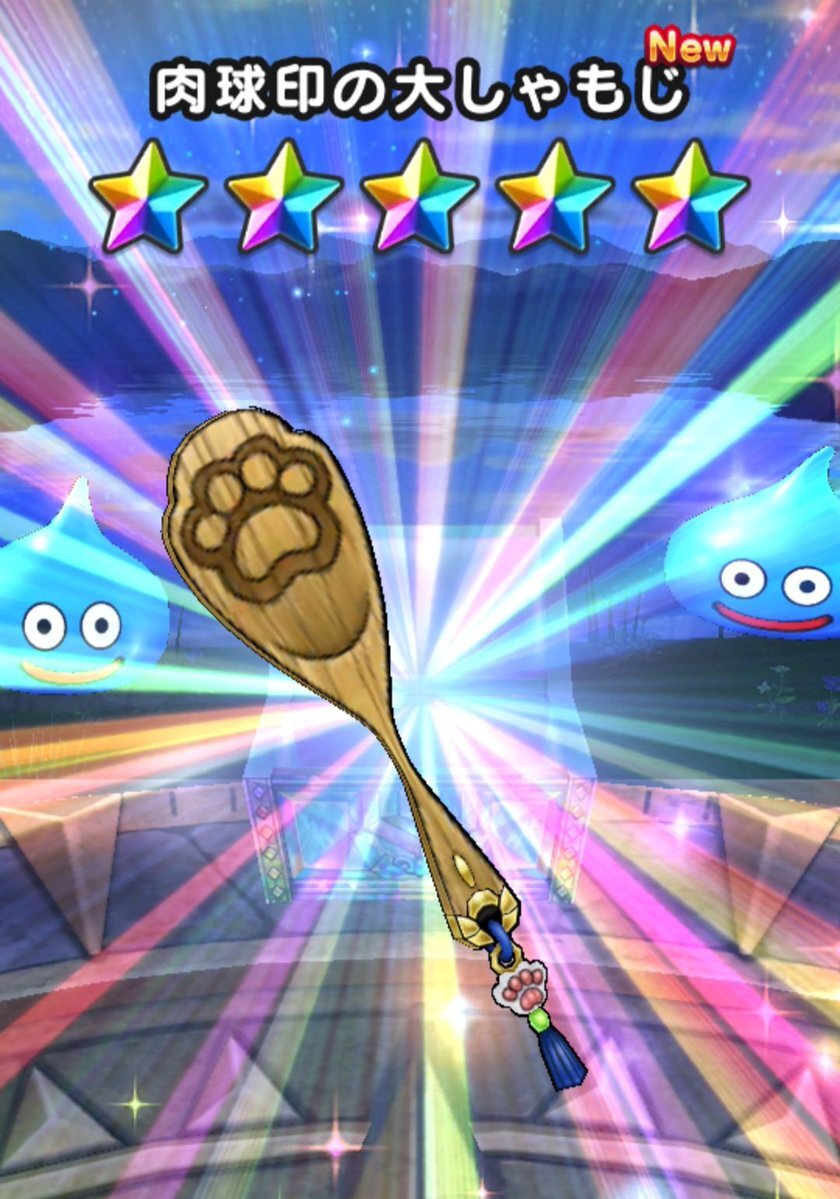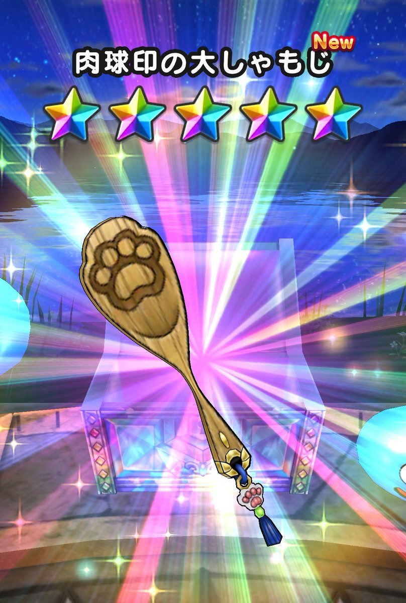 やったーーーーーー!!! 宝の地図モンスターこころS直後、 配布チケットでガチャ回し、 スラミチカットインからのゲットです!! 感謝!!✨ ありがとうございます!!✨ #ドラクエウォーク #肉球印の大しゃもじ pic.x.com/nq3cIFqxGn