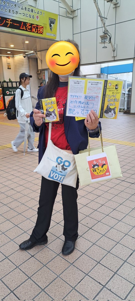 ☂️の予報だった10月の #肉球新党まちさがスタンディング でも始めた頃には止んでくれて、1時間足らずでリーフレット200部近くが完配👍❣️ 10月と言うことで、我が家の食いしん坊黒猫君にも協力頂きました😸 #スパイ防止法は現代の治安維持法 #みんな気づいて pic.x.com/UKrhMV1DkX