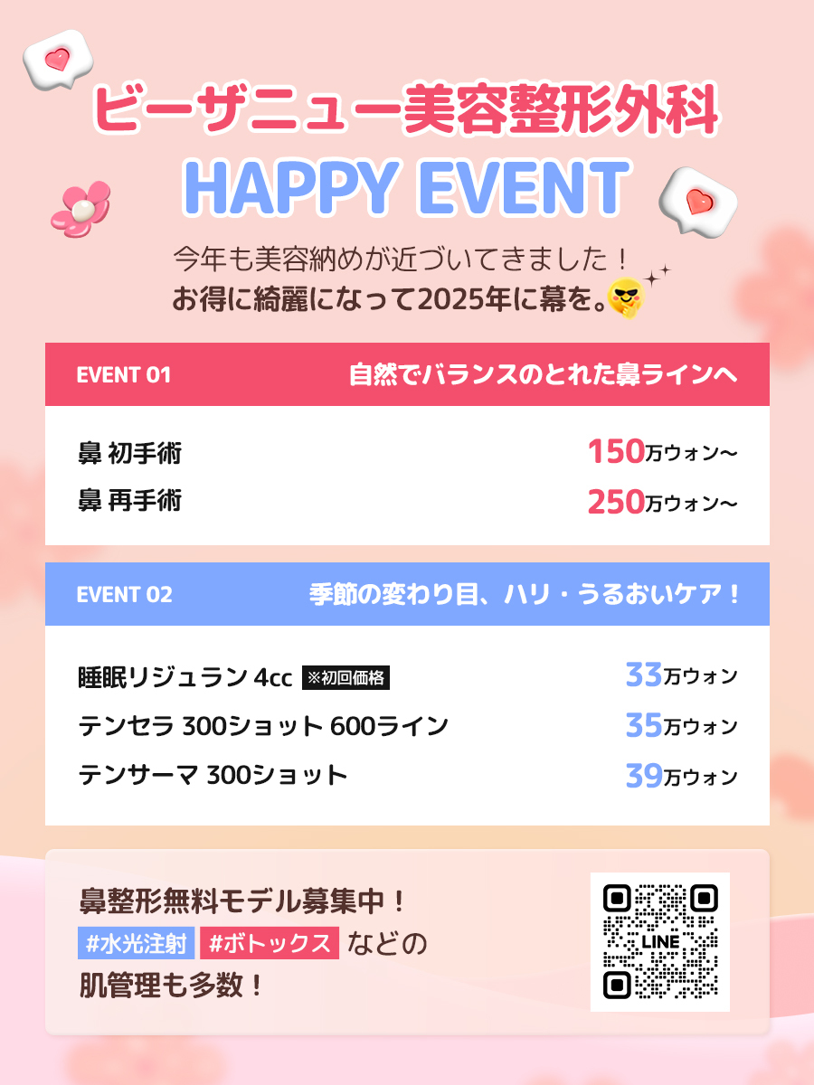 年末美容納めするならビーザニュー🇰🇷💟 👃🏻鼻整形 初手術150万ウォン~ 再手術250万ウォン~ 🧏🏻‍♀️おすすめ肌管理 睡眠リジュラン 4cc 33万ウォン(初回限定価格) テンセラ 35万ウォン テンサーマ 39万ウォン 他にもボトックスなどの美容施術多数あり💉✨ 詳しくは公式LINEまで💌lin.ee/bWTN9QL