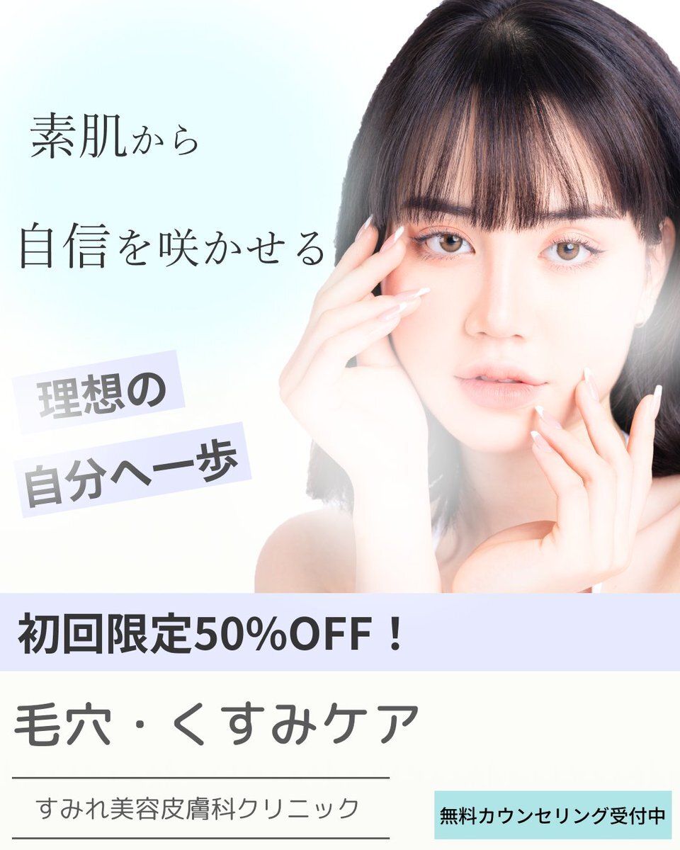 素肌から、自信を咲かせて🌿(架空バナー) 毛穴・くすみケアを始めたい方へ。 すみれ美容皮膚科クリニックでは 初回限定【50%OFF】キャンペーン実施中💎 自然な透明感を叶えるなら、今がチャンス🪞 #美容皮膚科 #美肌ケア #肌管理 #透明感肌 #美容医療 #美容好きさんと繋がりたい pic.x.com/zoQAc8TPID