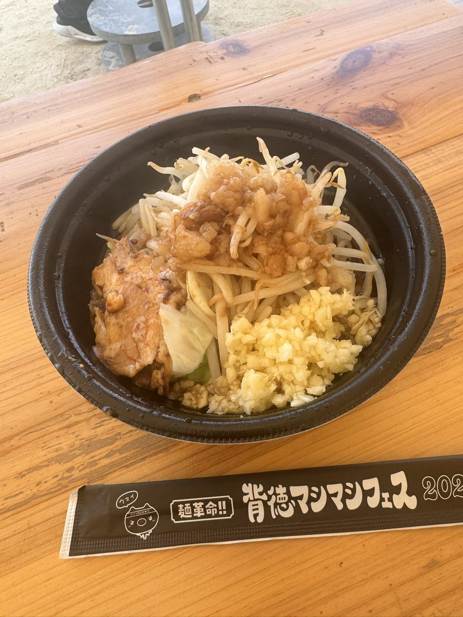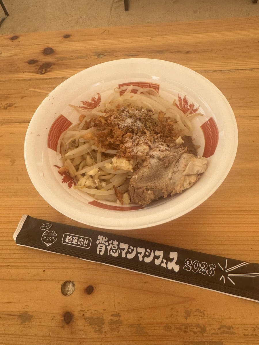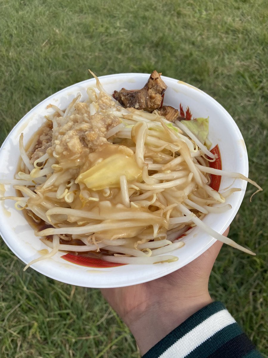 初めてラーメンフェス行った 二郎系(?)でグルメフェスやるのも行くのもアホすぎ でも美味しかったしまた行きたい #背徳マシマシフェス pic.x.com/UJ1zWan5he