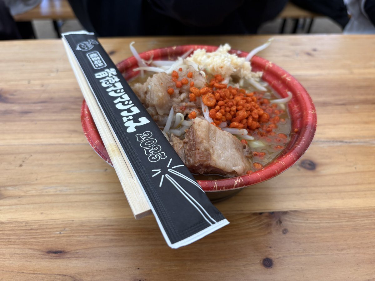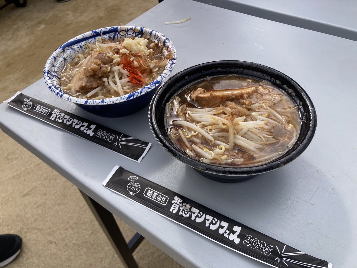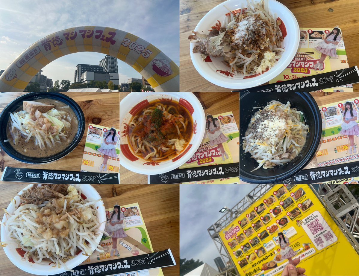 初めてラーメンフェス行った 二郎系(?)でグルメフェスやるのも行くのもアホすぎ でも美味しかったしまた行きたい #背徳マシマシフェス pic.x.com/UJ1zWan5he